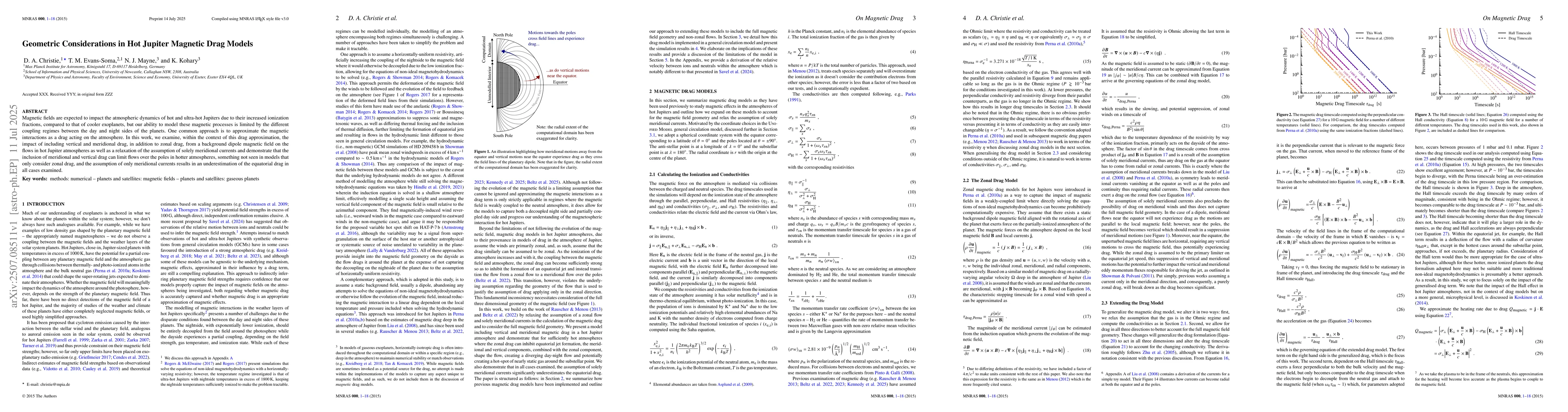 Magnetic fields are expected to impact the atmospheric dynamics of hot and ultra-hot Jupiters due to their increased ionization fractions, compared to that of cooler exoplanets, but our ability to model these magnetic processes is limited by the different coupling regimes between the day and night sides of the planets. One common approach is to approximate the magnetic interactions as a drag acting on the atmosphere. In this work, we examine, within the context of this drag approximation, the impact of including vertical and meridional drag, in addition to zonal drag, from a background dipole magnetic field on the flows in hot Jupiter atmospheres as well as a relaxation of the assumption of solely meridional currents and demonstrate that the inclusion of meridional and vertical drag can limit flows over the poles in hotter atmospheres, something not seen in models that only consider zonal drag, and the assumption of only meridional currents results in an underestimation of the equatorial drag in all cases examined.