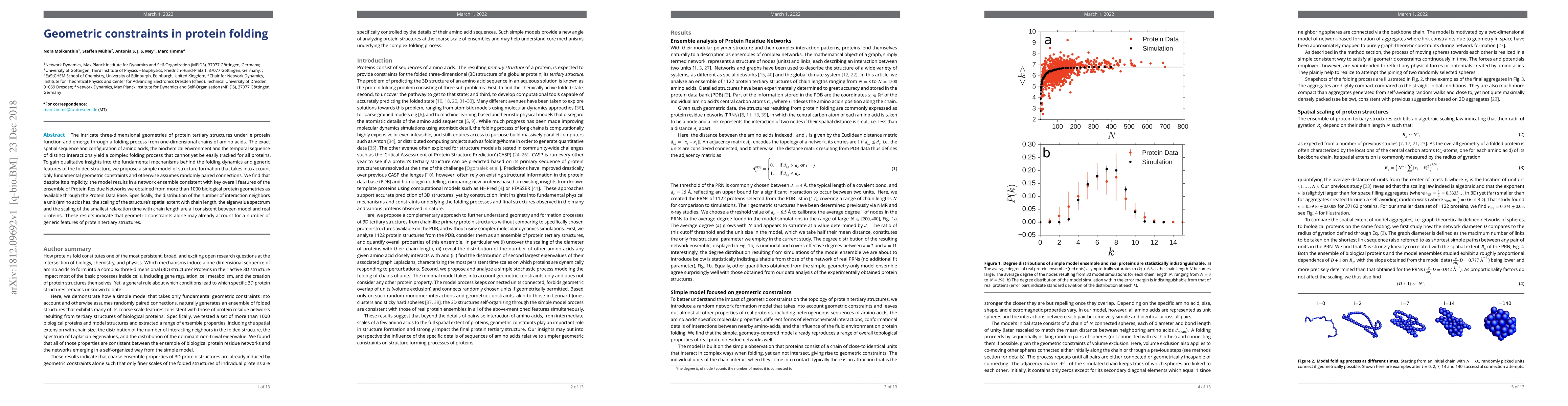 The paper presents a novel geometric constraint-based model for protein folding that reproduces key features of protein residue networks, offering a simplified approach to understanding protein folding mechanisms.