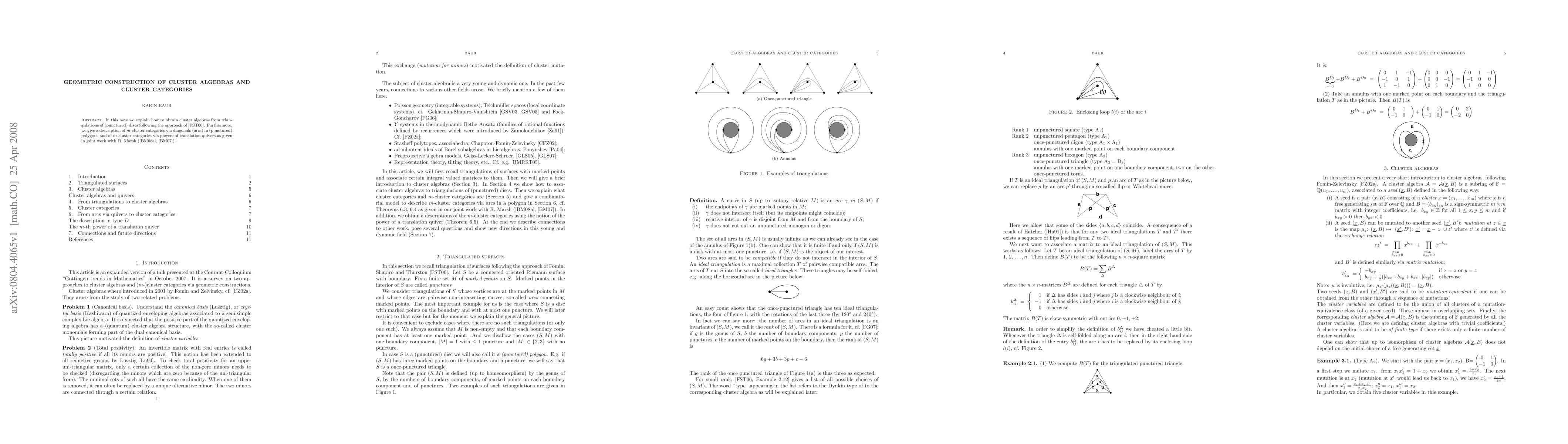This paper constructs cluster algebras from triangulations of punctured discs using the method of Fomin, Shapiro, and Thurston, and describes m-cluster categories through diagonals in polygons and via translation quivers in collaboration with Marsh.