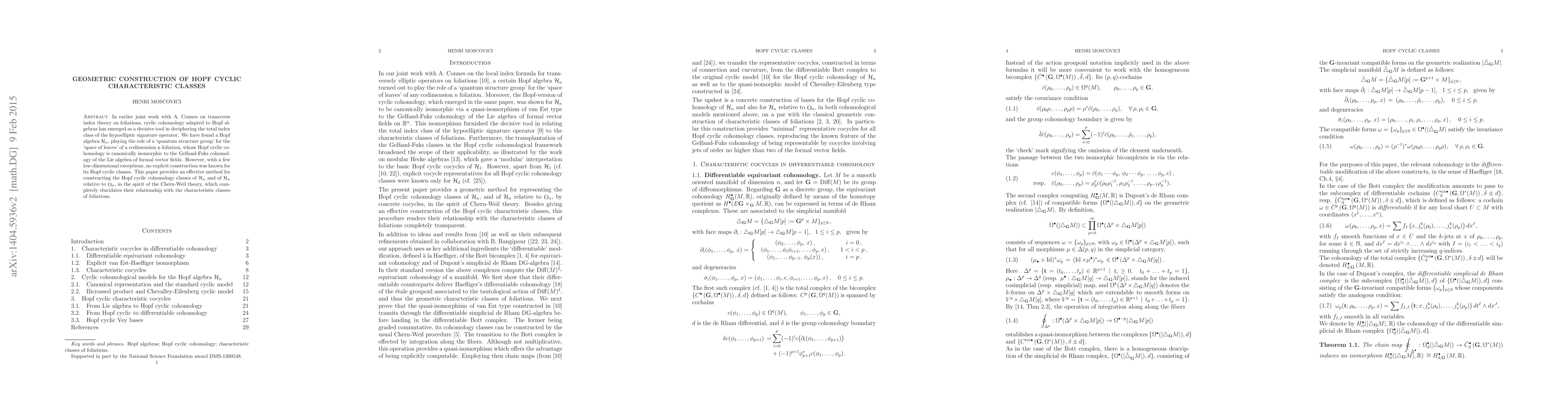 In earlier joint work with A. Connes on transverse index theory on foliations, cyclic cohomology adapted to Hopf algebras has emerged as a decisive tool in deciphering the total index class of the hypoelliptic signature operator. We have found a Hopf algebra H(n), playing the role of a `quantum structure group' for the `space of leaves' of a codimension n foliation, whose Hopf cyclic cohomology is canonically isomorphic to the Gelfand-Fuks cohomology of the Lie algebra of formal vector fields. However, with a few low-dimensional exceptions, no explicit construction was known for its Hopf cyclic classes. This paper provides an effective method for constructing the Hopf cyclic cohomology classes of H(n) and of H(n) relative to O(n), in the spirit of the Chern-Weil theory, which completely elucidates their relationship with the characteristic classes of foliations.