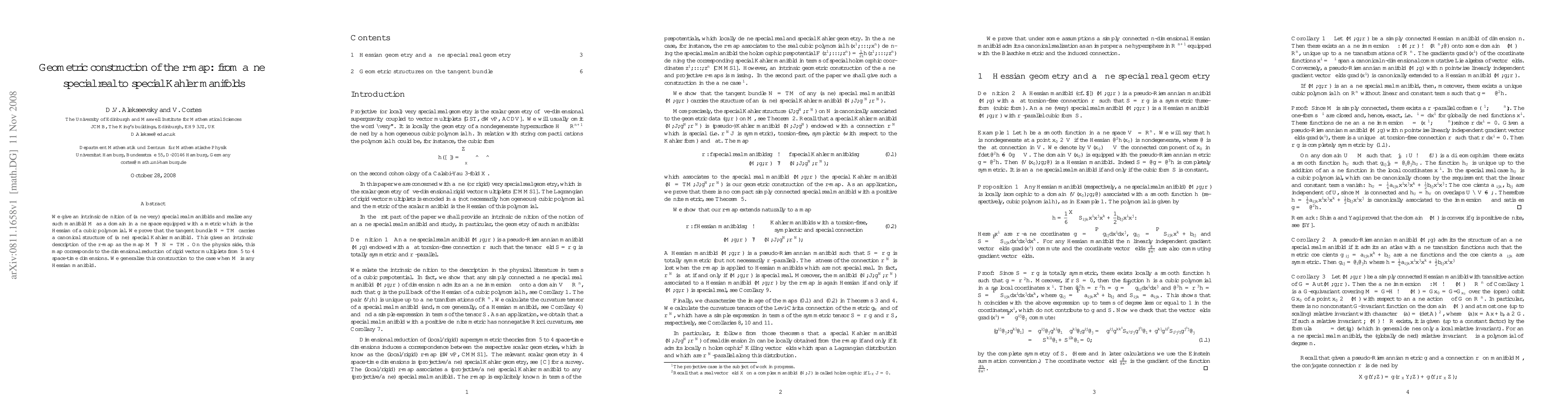 We give an intrinsic definition of (affine very) special real manifolds and realise any such manifold $M$ as a domain in affine space equipped with a metric which is the Hessian of a cubic polynomial. We prove that the tangent bundle $N=TM$ carries a canonical structure of (affine) special K\"ahler manifold. This gives an intrinsic description of the $r$-map as the map $M\mapsto N=TM$. On the physics side, this map corresponds to the dimensional reduction of rigid vector multiplets from 5 to 4 space-time dimensions. We generalise this construction to the case when $M$ is any Hessian manifold.