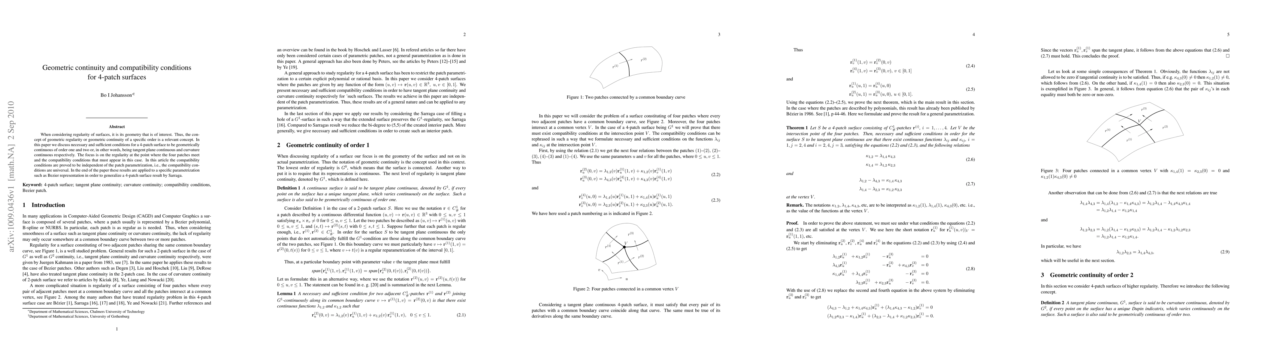 Researchers develop conditions for 4-patch surfaces to be geometrically continuous and ensure compatibility regardless of parametrization, with implications for surface modeling and design.