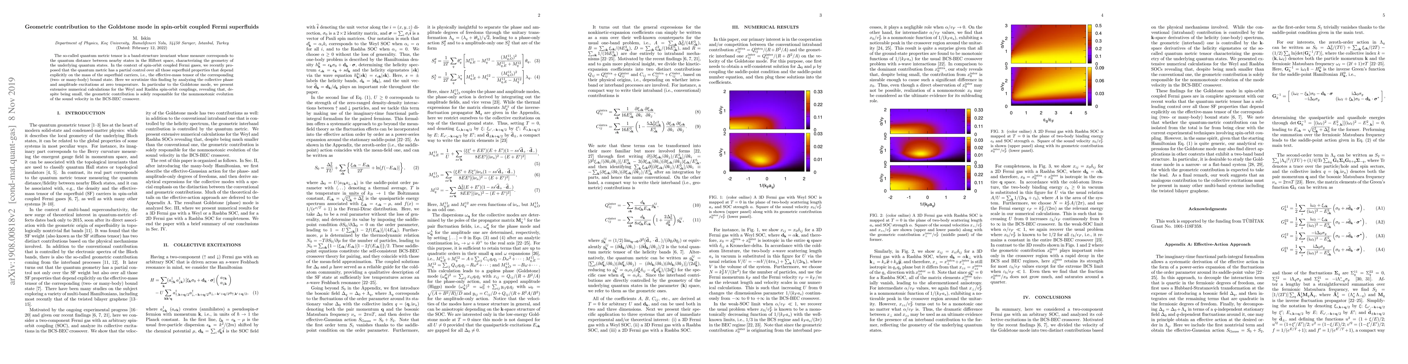 Researchers found that the geometric contribution of a quantum metric tensor plays a crucial role in determining the sound velocity of spin-orbit coupled Fermi superfluids, even for small coupling strengths.