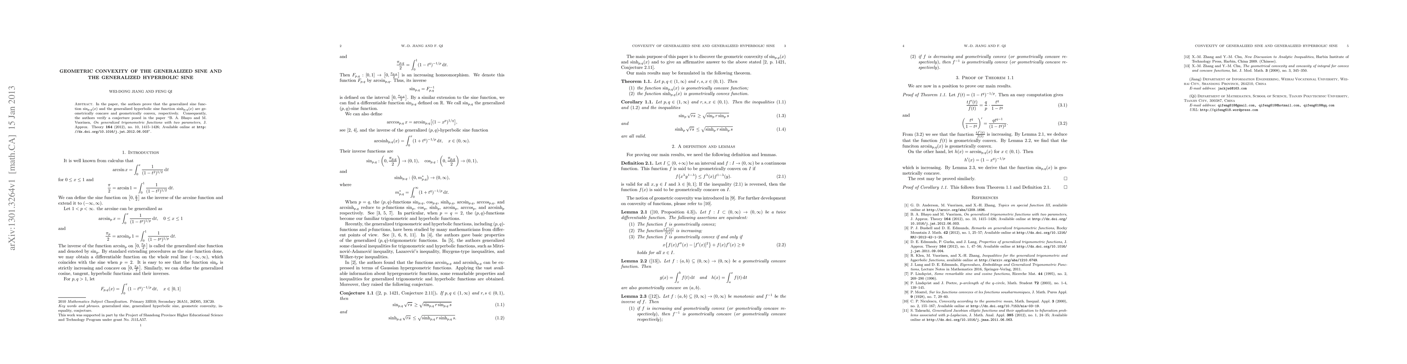 In the paper, the authors prove that the generalized sine function $\sin_{p,q}(x)$ and the generalized hyperbolic sine function $\sinh_{p,q}(x)$ are geometrically concave and geometrically convex, respectively. Consequently, the authors verify a conjecture posed in the paper "B. A. Bhayo and M. Vuorinen, On generalized trigonometric functions with two parameters, J. Approx. Theory 164 (2012), no.~10, 1415\nobreakdash--1426; Available online at \url{http://dx.doi.org/10.1016/j.jat.2012.06.003}".