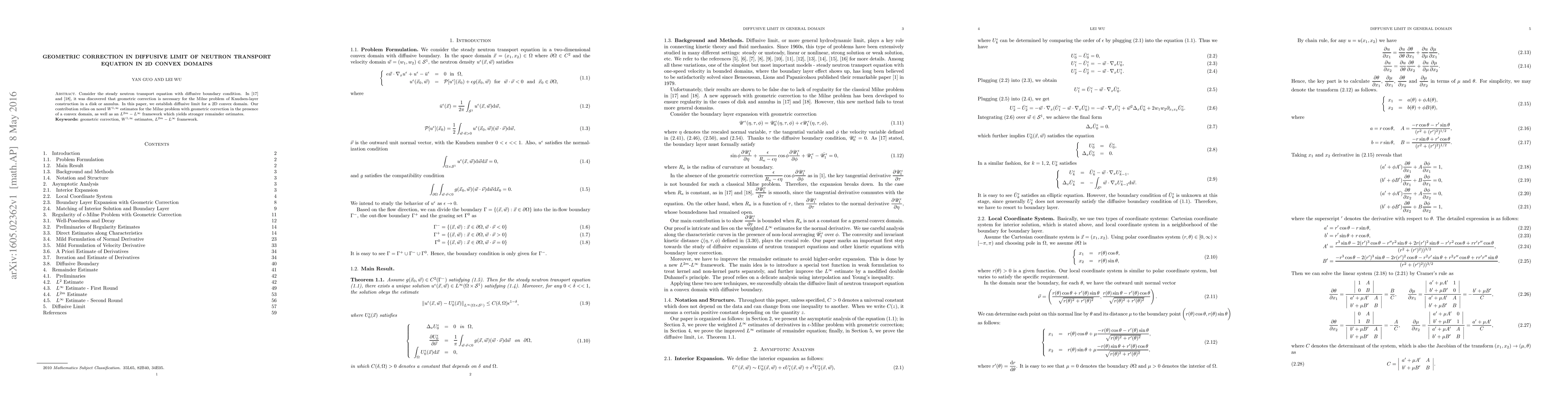 Consider the steady neutron transport equation with diffusive boundary condition. In [Wu and Guo(2015) Comm. Math. Phys.] and [Wu and Yang and Guo(2016) Preprint], it was discovered that geometric correction is necessary for the Milne problem of Knudsen-layer construction in a disk or annulus. In this paper, we establish diffusive limit for a 2D convex domain. Our contribution relies on novel $W^{1,\infty}$ estimates for the Milne problem with geometric correction in the presence of a convex domain, as well as an $L^{2m}-L^{\infty}$ framework which yields stronger remainder estimates.