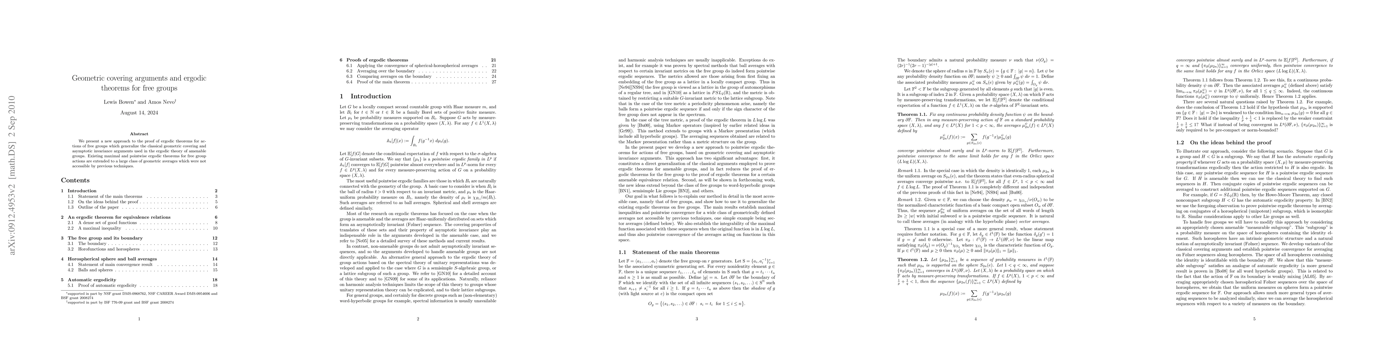 The paper introduces a novel geometric covering method to prove ergodic theorems for free group actions, extending classical techniques used for amenable groups and generalizing existing maximal and pointwise ergodic theorems. The approach also opens new possibilities for applications to other groups and ergodic theory problems.