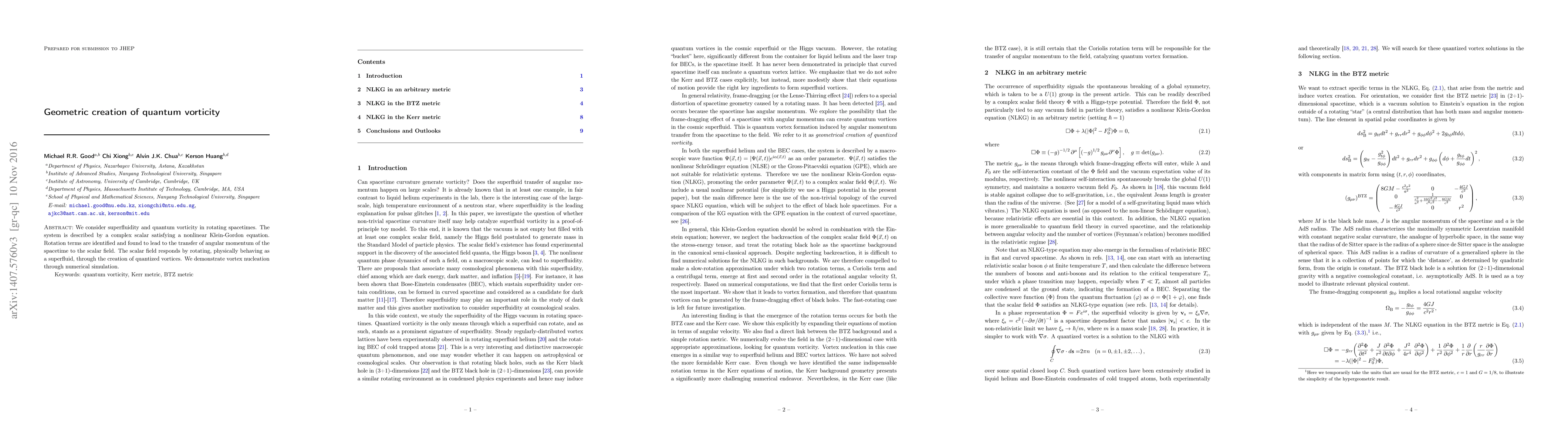 We consider superfluidity and quantum vorticity in rotating spacetimes. The system is described by a complex scalar satisfying a nonlinear Klein-Gordon equation. Rotation terms are identified and found to lead to the transfer of angular momentum of the spacetime to the scalar field. The scalar field responds by rotating, physically behaving as a superfluid, through the creation of quantized vortices. We demonstrate the vortex nucleation through numerical simulation.
