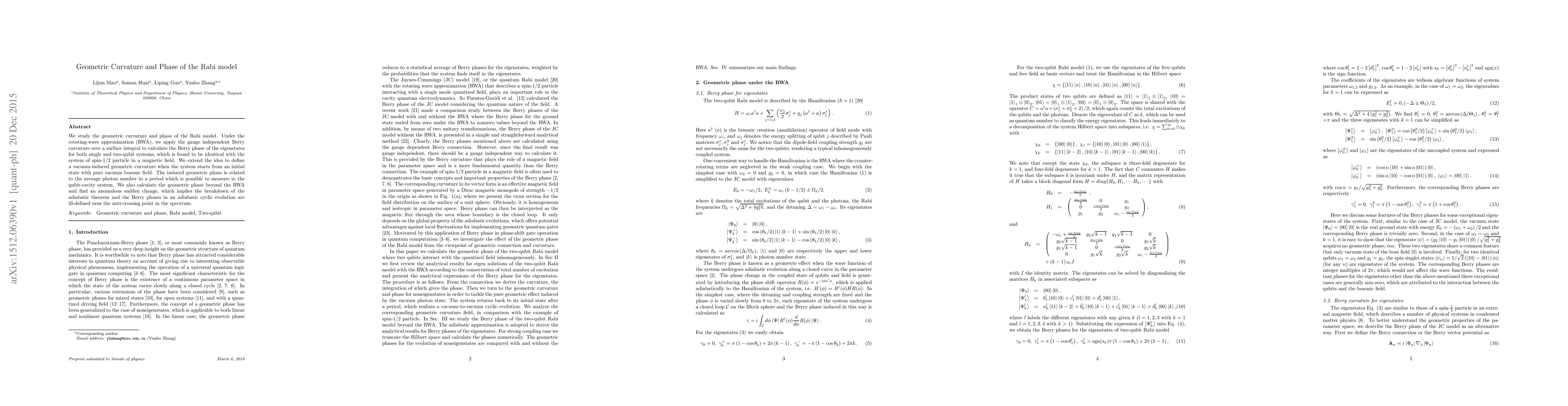 This paper explores the geometric curvature and phase of the Rabi model, revealing that the Berry phase under the rotating-wave approximation matches that of a spin-1/2 particle in a magnetic field. It also introduces a vacuum-induced geometric curvature and discusses the breakdown of the adiabatic theorem near the anti-crossing point, leading to ill-defined Berry phases.