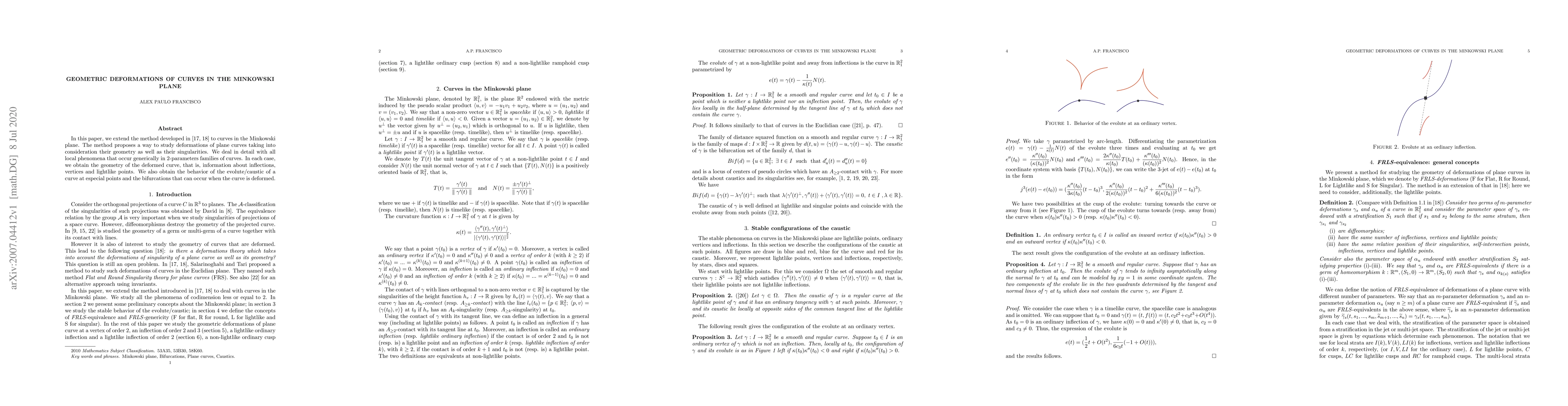 In this paper, we extend the method developed in [17, 18] to curves in the Minkowski plane. The method proposes a way to study deformations of plane curves taking into consideration their geometry as well as their singularities. We deal in detail with all local phenomena that occur generically in 2-parameters families of curves. In each case, we obtain the geometry of the deformed curve, that is, information about inflections, vertices and lightlike points. We also obtain the behavior of the evolute/caustic of a curve at especial points and the bifurcations that can occur when the curve is deformed.