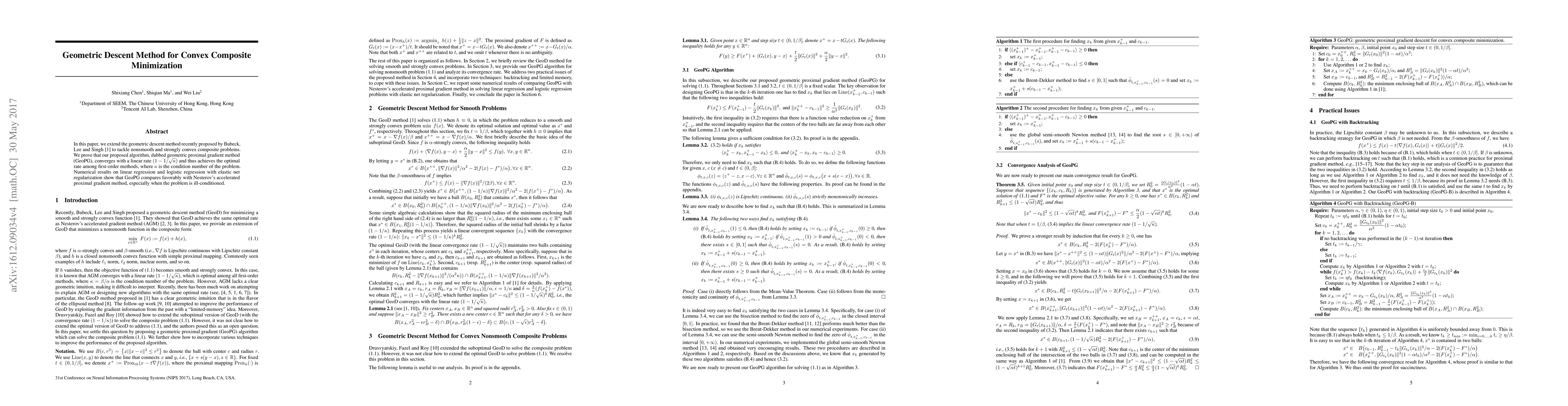 In this paper, we extend the geometric descent method recently proposed by Bubeck, Lee and Singh to tackle nonsmooth and strongly convex composite problems. We prove that our proposed algorithm, dubbed geometric proximal gradient method (GeoPG), converges with a linear rate $(1-1/\sqrt{\kappa})$ and thus achieves the optimal rate among first-order methods, where $\kappa$ is the condition number of the problem. Numerical results on linear regression and logistic regression with elastic net regularization show that GeoPG compares favorably with Nesterov's accelerated proximal gradient method, especially when the problem is ill-conditioned.