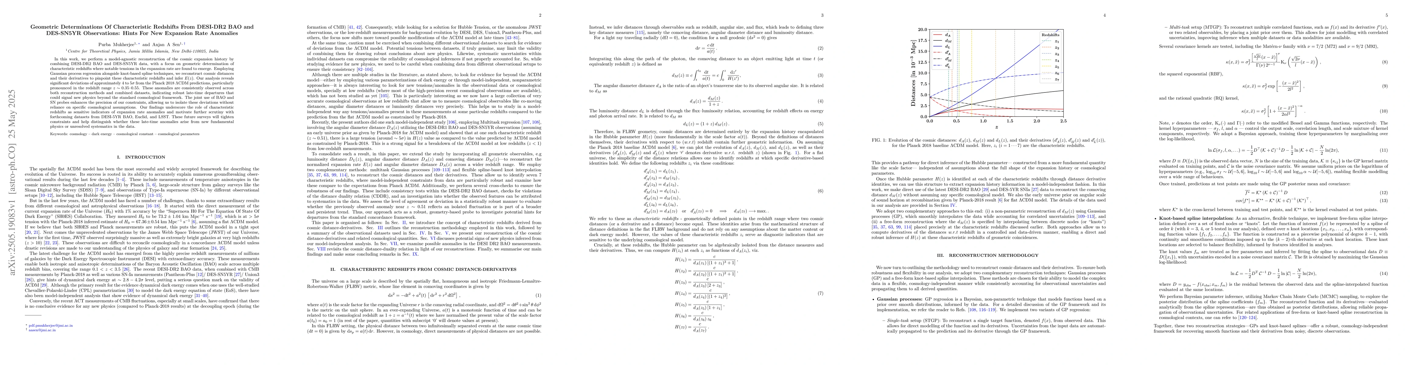 The research employs Gaussian process regression and knot-based spline techniques to reconstruct cosmic distances and their derivatives from DESI-DR2 BAO and DES-SN5YR data, focusing on geometric determination of characteristic redshifts.