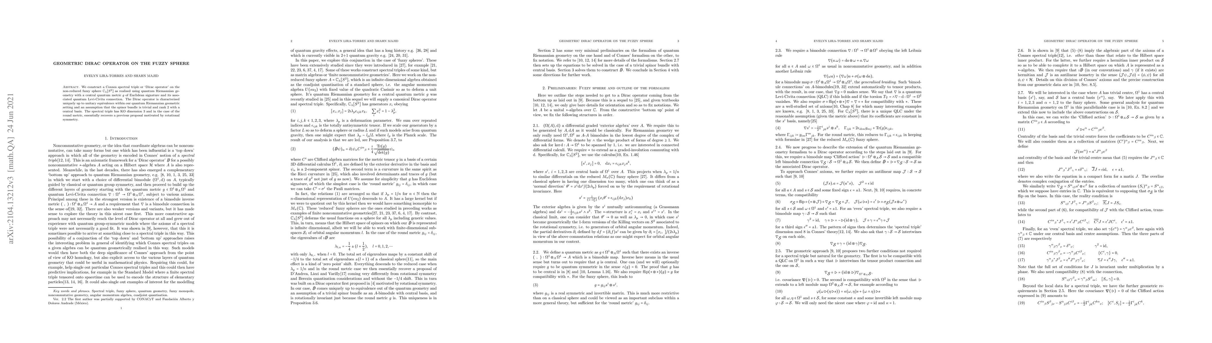 The Dirac operator on the fuzzy sphere was shown to be a spectral triple, which has implications for our understanding of quantum gravity.