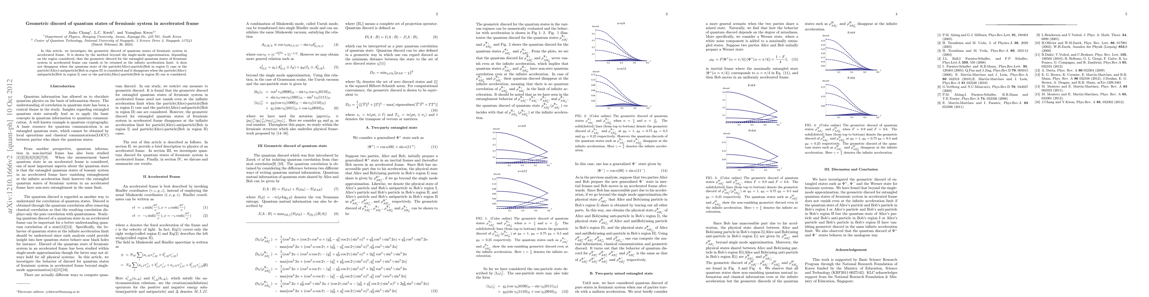 This paper examines the geometric discord of entangled quantum states in a fermionic system under acceleration, revealing that discord can either vanish or persist at infinite acceleration depending on the region and particle-antiparticle interactions considered. The results challenge the single-mode approximation.