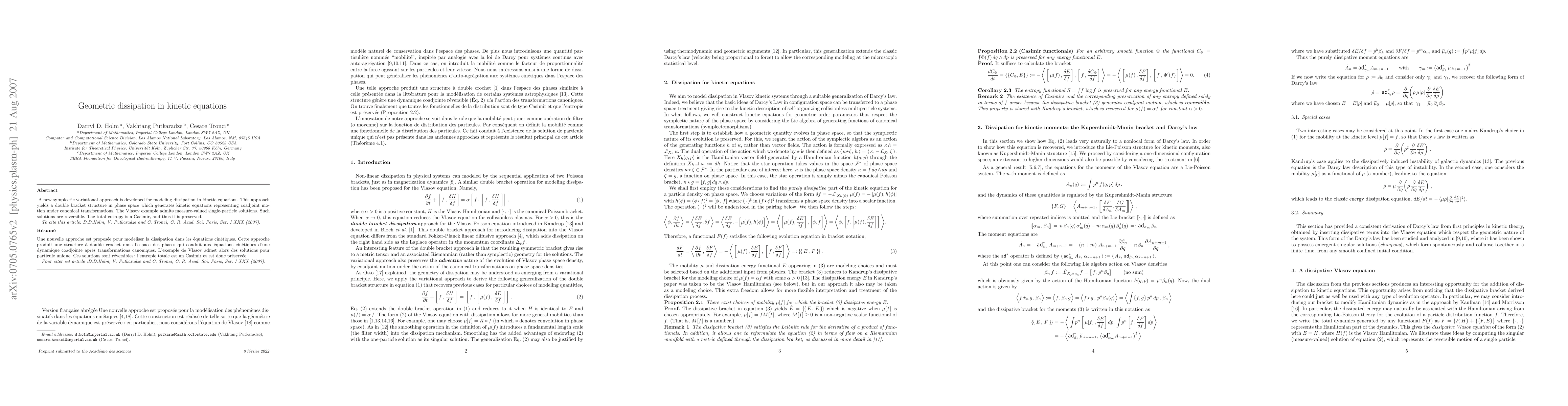 A new symplectic variational approach models dissipation in kinetic equations, introducing a double bracket structure that represents coadjoint motion under canonical transformations. The Vlasov equation demonstrates reversible measure-valued single-particle solutions where total entropy remains constant as a Casimir.