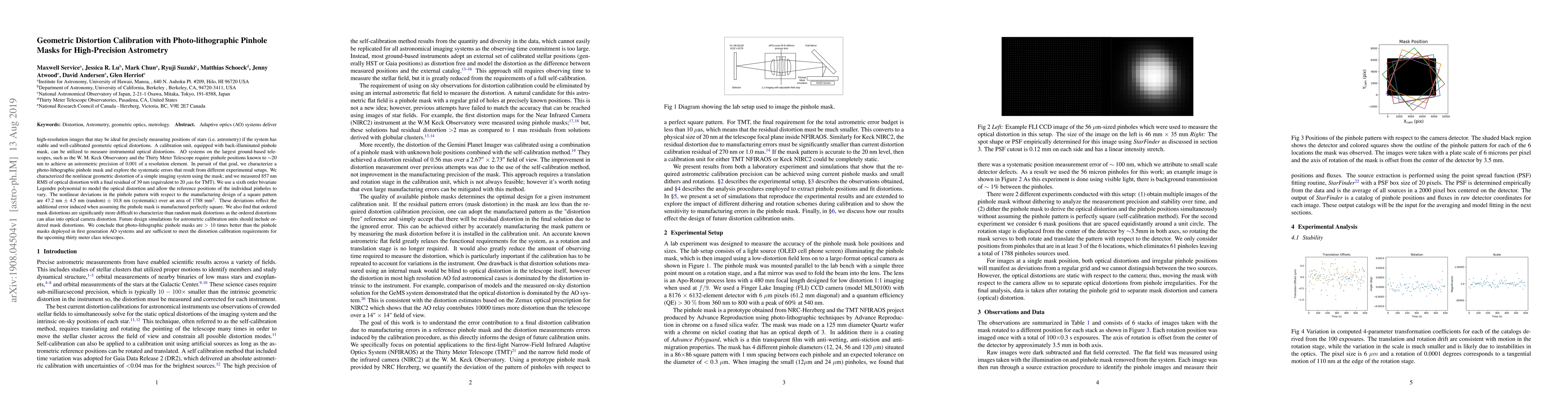 Adaptive optics (AO) systems deliver high-resolution images that may be ideal for precisely measuring positions of stars (i.e. astrometry) if the system has stable and well-calibrated geometric optical distortions. A calibration unit, equipped with back-illuminated pinhole mask, can be utilized to measure instrumental optical distortions. AO systems on the largest ground-based telescopes, such as the W. M. Keck Observatory and the Thirty Meter Telescope require pinhole positions known to 20 nm to achieve an astrometric precision of 0.001 of a resolution element. We characterize a photo-lithographic pinhole mask and explore the systematic errors that result from different experimental setups. We characterized the nonlinear geometric distortion of a simple imaging system using the mask; and we measured 857 nm RMS of optical distortion with a final residual of 39 nm (equivalent to 20 {\mu}as for TMT). We use a sixth order bivariate Legendre polynomial to model the optical distortion and allow the reference positions of the individual pinholes to vary. The nonlinear deviations in the pinhole pattern with respect to the manufacturing design of a square pattern are 47.2 nm +/- 4.5 nm (random) +/- 10.8 nm (systematic) over an area of 1788 mm$^2$. These deviations reflect the additional error induced when assuming the pinhole mask is manufactured perfectly square. We also find that ordered mask distortions are significantly more difficult to characterize than random mask distortions as the ordered distortions can alias into optical camera distortion. Future design simulations for astrometric calibration units should include ordered mask distortions. We conclude that photo-lithographic pinhole masks are >10 times better than the pinhole masks deployed in first generation AO systems and are sufficient to meet the distortion calibration requirements for the upcoming thirty meter class telescopes.