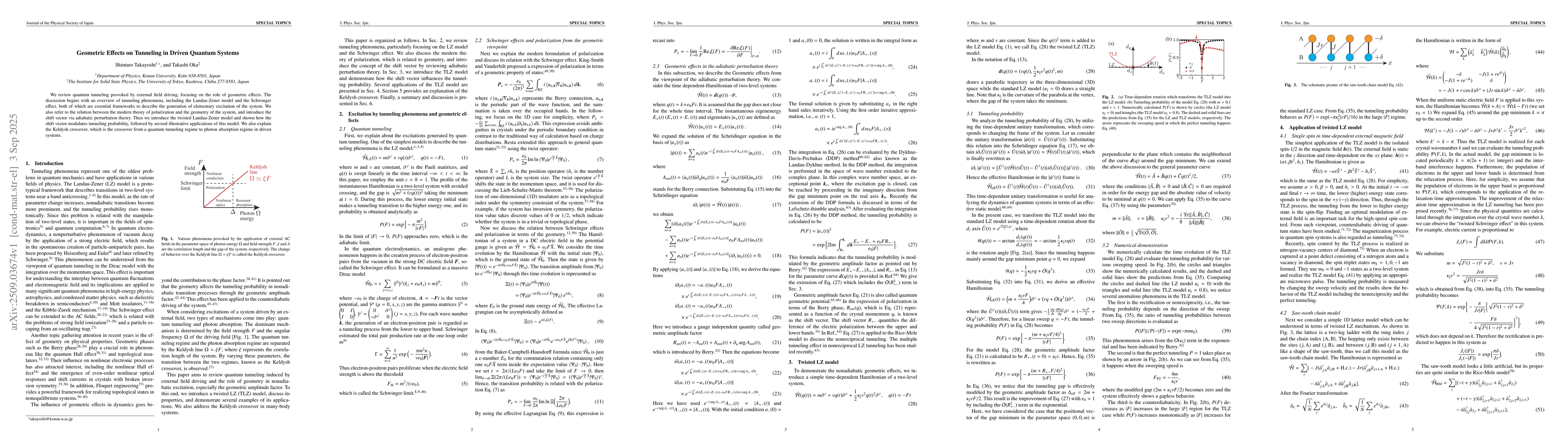 We review quantum tunneling provoked by external field driving, focusing on the role of geometric effects. The discussion begins with an overview of tunneling phenomena, including the Landau-Zener model and the Schwinger effect, both of which are essential frameworks to describe the generation of elementary excitation of the system. We also refer to the relation between the modern theory of polarization and the geometry of the system, and introduce the shift vector via adiabatic perturbation theory. Then we introduce the twisted Landau-Zener model and shown how the shift vector modulates tunneling probability, followed by several illustrative applications of this model. We also explain the Keldysh crossover, which is the crossover from a quantum tunneling regime to photon absorption regime in driven systems.