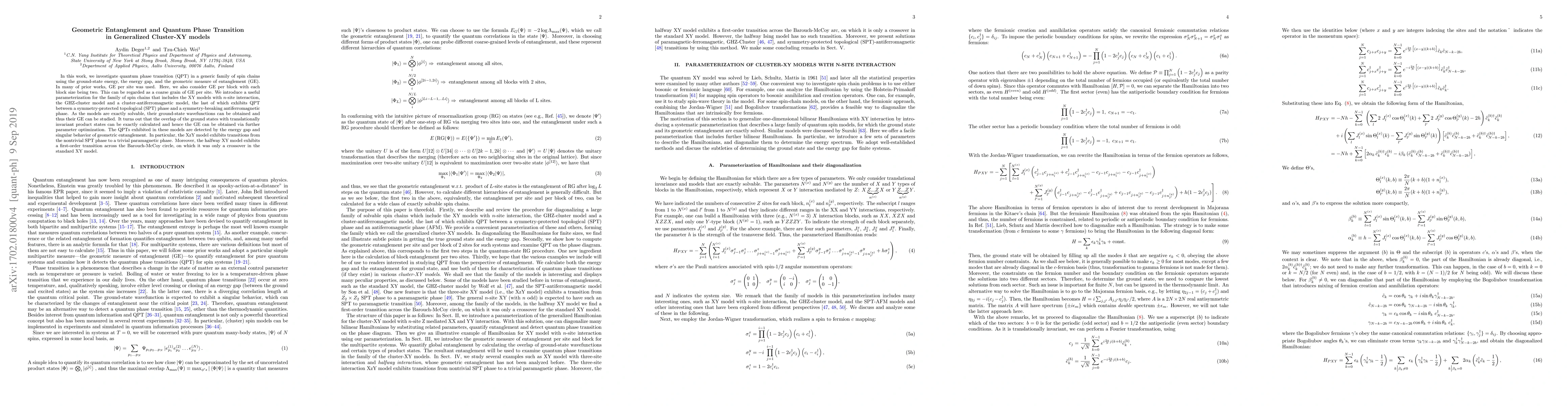 Researchers studied quantum phase transitions in a range of spin chain models using geometric entanglement, finding that some exhibit first-order transitions between symmetry-protected topological phases and paramagnetic phases.