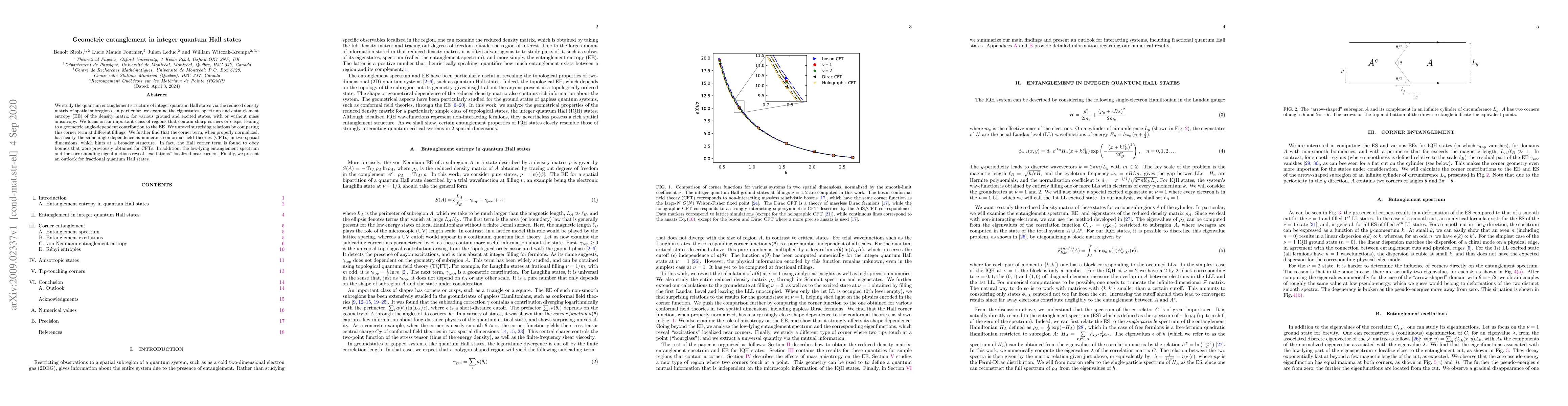 This paper investigates the geometric entanglement in integer quantum Hall states, focusing on the entanglement entropy (EE) of spatial subregions, especially those with sharp corners, revealing angle-dependent contributions. The study finds that the corner term in the EE, when normalized, mirrors the angle dependence of conformal field theories, suggesting a broader underlying structure.