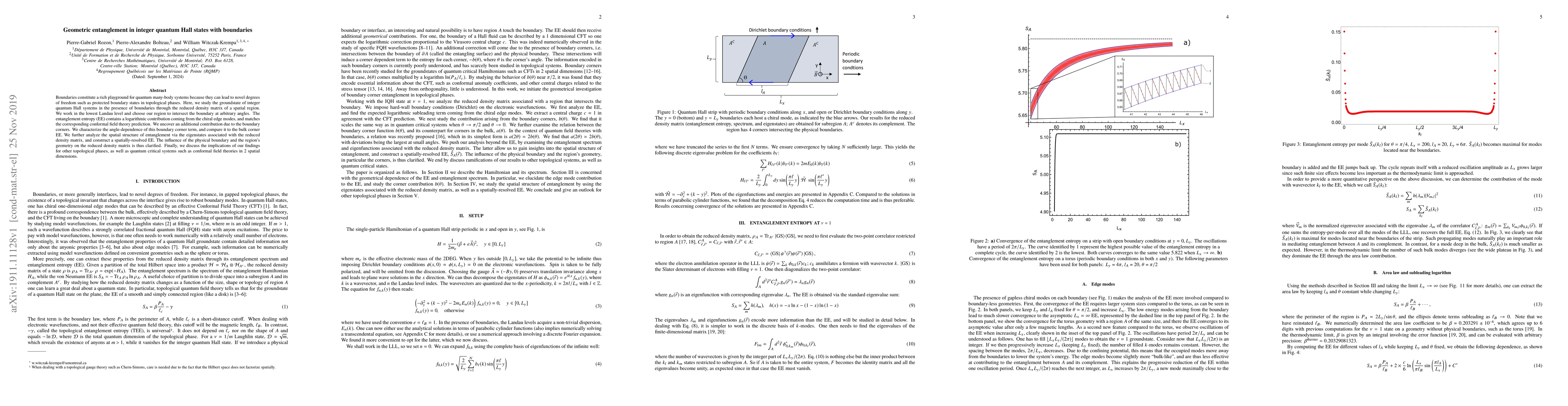 This paper investigates the entanglement entropy in the ground state of integer quantum Hall systems with boundaries, revealing a logarithmic contribution from chiral edge modes and a novel angle-dependent contribution from boundary corners. The study elucidates the spatial structure of entanglement and its dependence on the geometry of the region and the physical boundary.