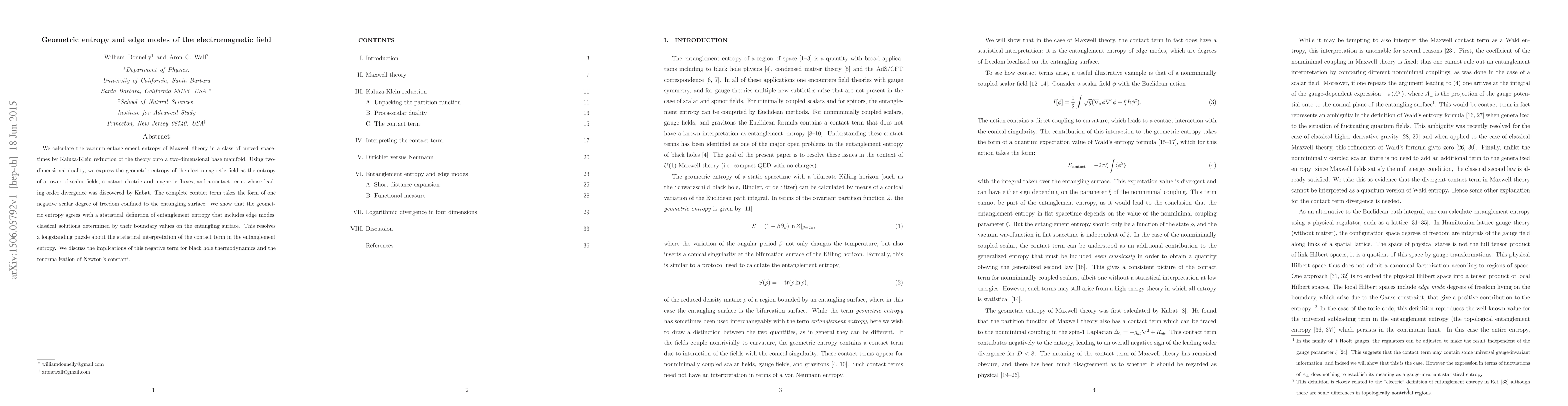 We calculate the vacuum entanglement entropy of Maxwell theory in a class of curved spacetimes by Kaluza-Klein reduction of the theory onto a two-dimensional base manifold. Using two-dimensional duality, we express the geometric entropy of the electromagnetic field as the entropy of a tower of scalar fields, constant electric and magnetic fluxes, and a contact term, whose leading order divergence was discovered by Kabat. The complete contact term takes the form of one negative scalar degree of freedom confined to the entangling surface. We show that the geometric entropy agrees with a statistical definition of entanglement entropy that includes edge modes: classical solutions determined by their boundary values on the entangling surface. This resolves a longstanding puzzle about the statistical interpretation of the contact term in the entanglement entropy. We discuss the implications of this negative term for black hole thermodynamics and the renormalization of Newton's constant.