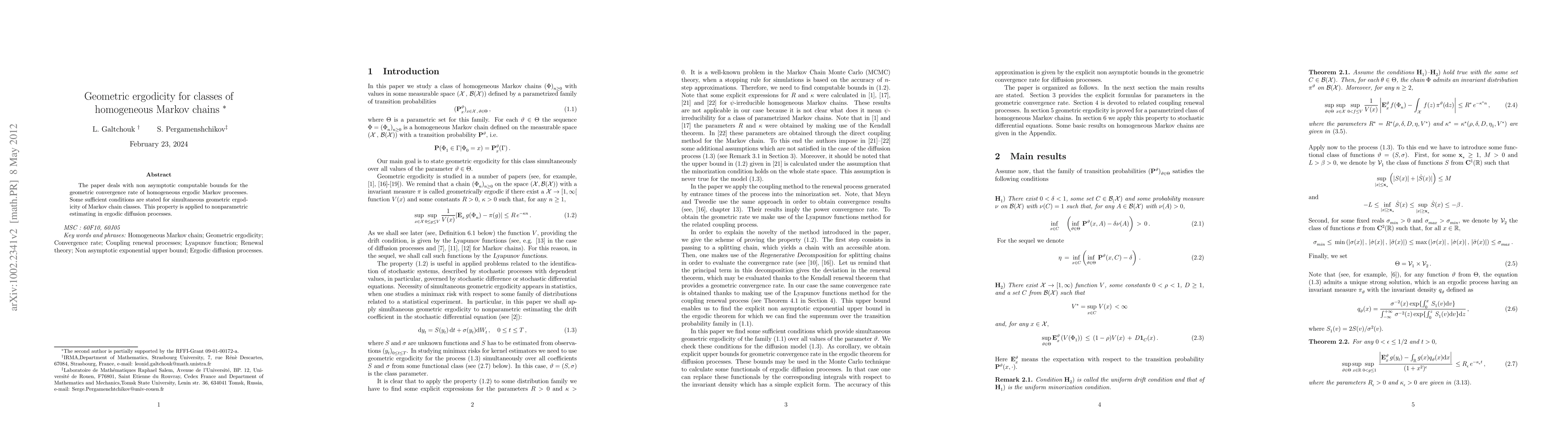 This paper establishes nonasymptotic exponential bounds for deviation in the ergodic theorem for homogeneous Markov processes and identifies sufficient conditions for uniform geometric ergodicity across a parametric family. It applies these findings to improve nonasymptotic nonparametric estimation for ergodic diffusion processes.