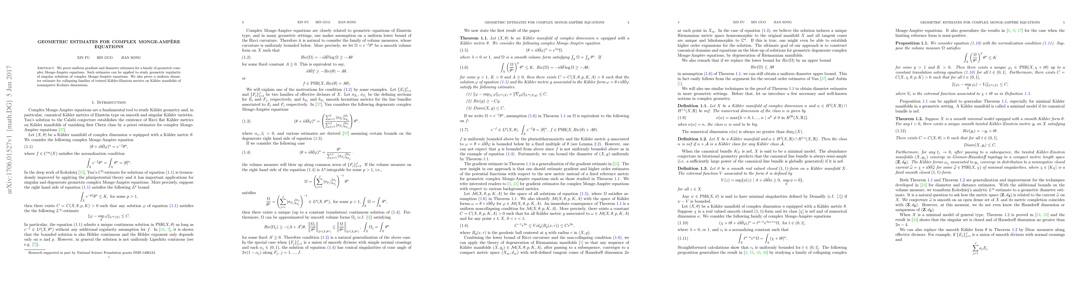 We prove uniform gradient and diameter estimates for a family of geometric complex Monge-Ampere equations. Such estimates can be applied to study geometric regularity of singular solutions of complex Monge-Ampere equations. We also prove a uniform diameter estimate for collapsing families of twisted Kahler-Einstein metrics on Kahler manifolds of nonnegative Kodaira dimensions.