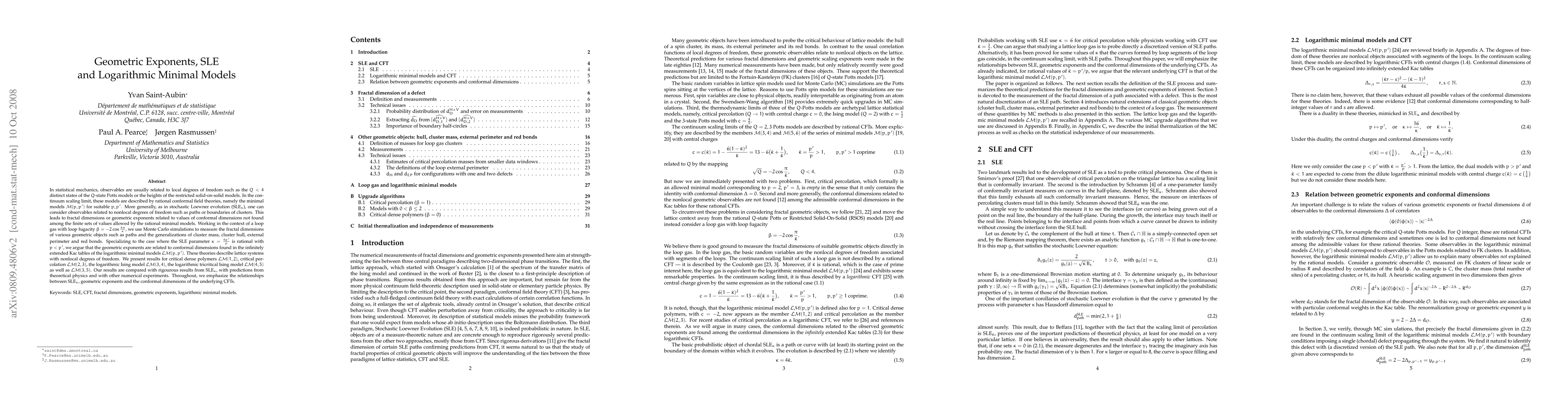 This paper investigates the relationship between stochastic Loewner evolution (SLE) and logarithmic minimal models in statistical mechanics, using Monte Carlo simulations to measure fractal dimensions of geometric objects. It finds that the geometric exponents observed in loop gas models correspond to conformal dimensions in logarithmic minimal models, providing a bridge between nonlocal degrees of freedom and conformal field theories.