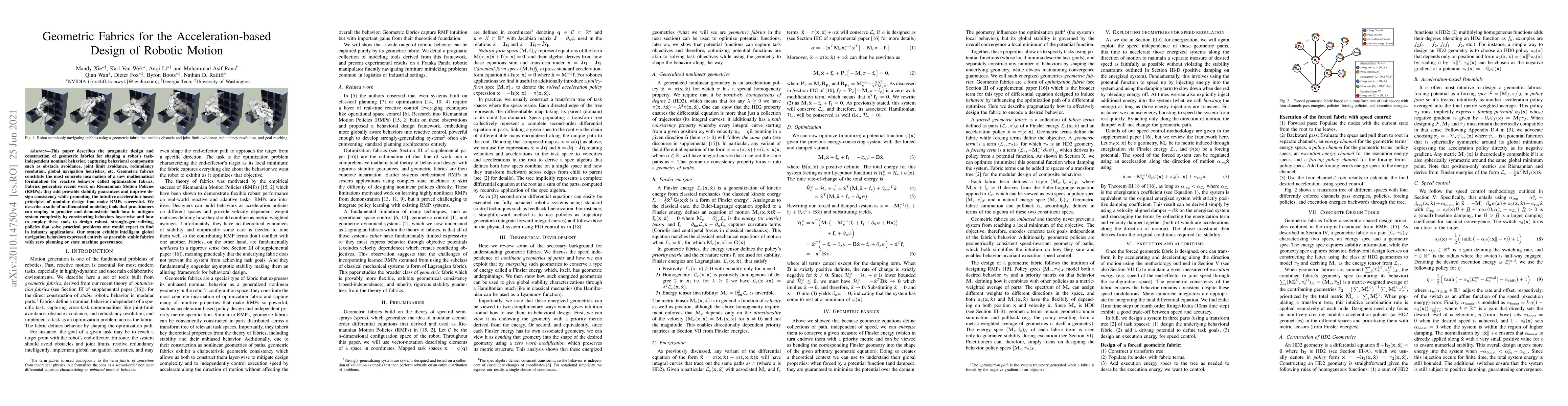 This paper describes the pragmatic design and construction of geometric fabrics for shaping a robot's task-independent nominal behavior, capturing behavioral components such as obstacle avoidance, joint limit avoidance, redundancy resolution, global navigation heuristics, etc. Geometric fabrics constitute the most concrete incarnation of a new mathematical formulation for reactive behavior called optimization fabrics. Fabrics generalize recent work on Riemannian Motion Policies (RMPs); they add provable stability guarantees and improve design consistency while promoting the intuitive acceleration-based principles of modular design that make RMPs successful. We describe a suite of mathematical modeling tools that practitioners can employ in practice and demonstrate both how to mitigate system complexity by constructing behaviors layer-wise and how to employ these tools to design robust, strongly-generalizing, policies that solve practical problems one would expect to find in industry applications. Our system exhibits intelligent global navigation behaviors expressed entirely as provably stable fabrics with zero planning or state machine governance.