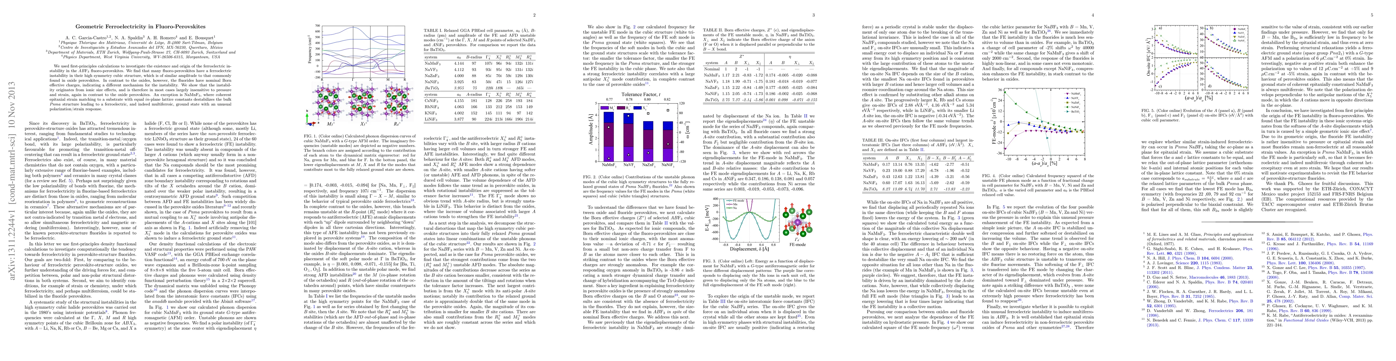 We used first-principles calculations to investigate the existence and origin of the ferroelectric in- stability in the ABF3 fluoro-perovskites. We find that many fluoro-perovskites have a ferroelectric instability in their high symmetry cubic structure, which is of similar amplitude to that commonly found in oxide perovskites. In contrast to the oxides, however, the fluorides have nominal Born effective charges, indicating a different mechanism for the instability. We show that the instability originates from ionic size effects, and is therefore in most cases largely insensitive to pressure and strain, again in contrast to the oxide perovskites. An exception is NaMnF3, where coherent epitaxial strain matching to a substrate with equal in-plane lattice constants destabilizes the bulk Pnma structure leading to a ferroelectric, and indeed multiferroic, ground state with an unusual polarization/strain response.