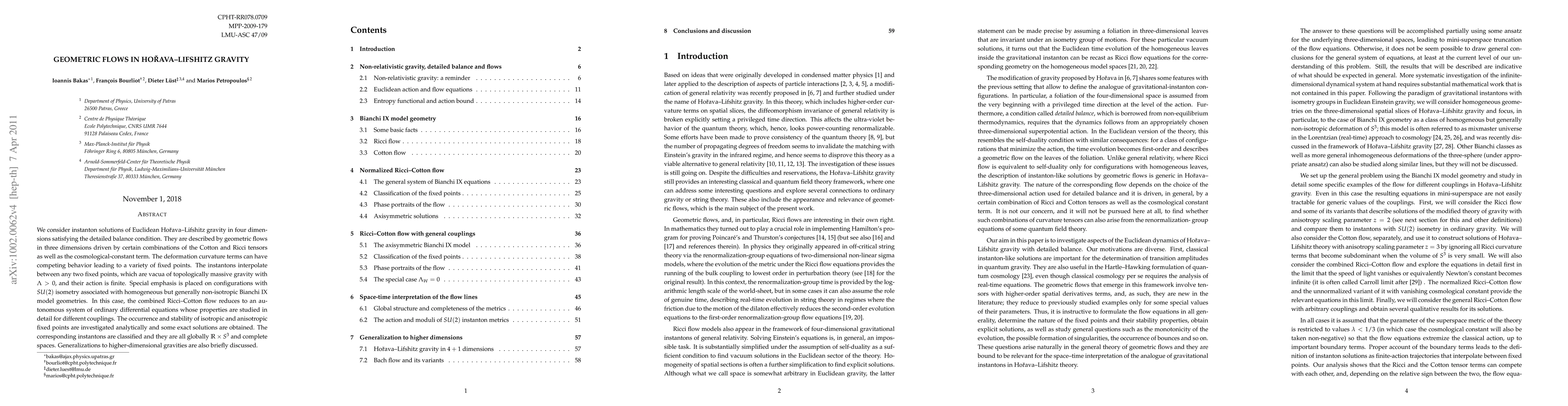 This paper explores instanton solutions in Euclidean Horava-Lifshitz gravity, driven by geometric flows in three dimensions involving the Cotton and Ricci tensors, and investigates their fixed points, stability, and exact solutions, particularly for SU(2) isometry in Bianchi IX models. The study also briefly discusses generalizations to higher-dimensional gravities.