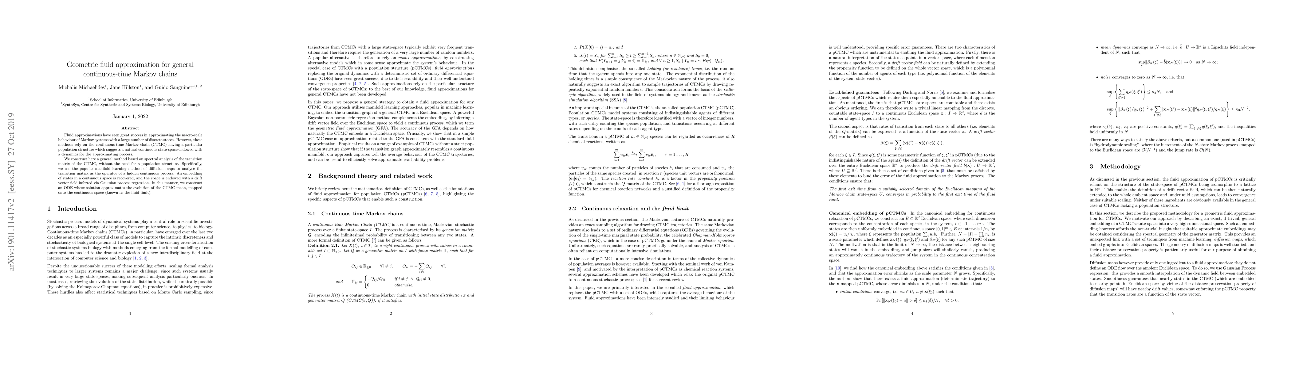 Researchers developed a method to approximate the behavior of large-scale Markov systems using continuous-time Markov chains without relying on population structures, instead analyzing the transition matrix through spectral analysis and diffusion maps.