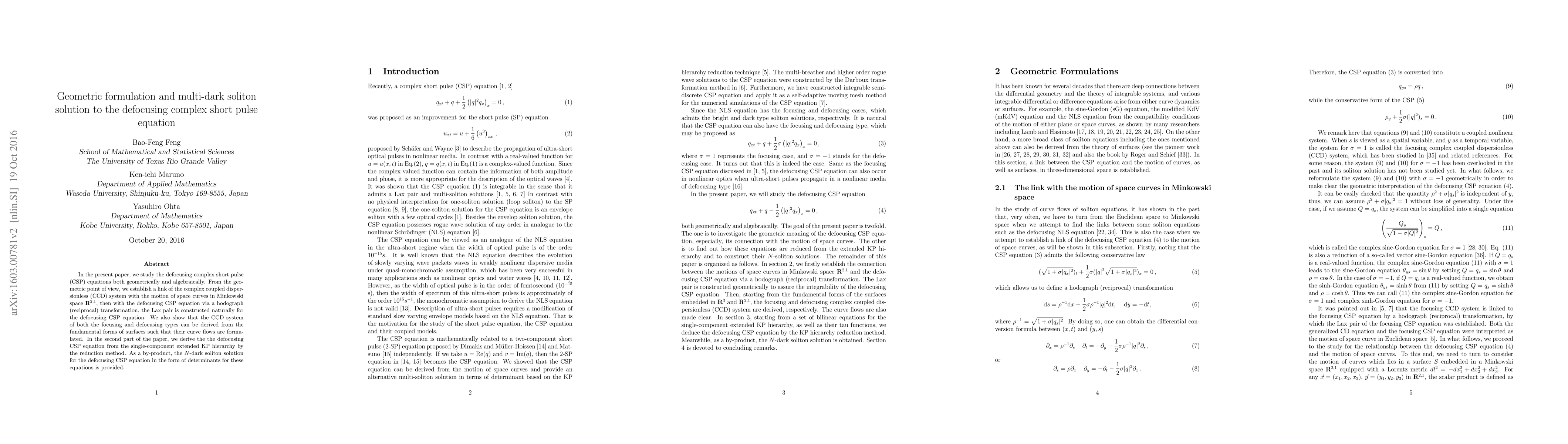 In the present paper, we study the defocusing complex short pulse (CSP) equations both geometrically and algebraically. From the geometric point of view, we establish a link of the complex coupled dispersionless (CCD) system with the motion of space curves in Minkowski space $\mathbf{R}^{2,1}$, then with the defocusing CSP equation via a hodograph (reciprocal) transformation, the Lax pair is constructed naturally for the defocusing CSP equation. We also show that the CCD system of both the focusing and defocusing types can be derived from the fundamental forms of surfaces such that their curve flows are formulated. In the second part of the paper, we derive the the defocusing CSP equation from the single-component extended KP hierarchy by the reduction method. As a by-product, the $N$-dark soliton solution for the defocusing CSP equation in the form of determinants for these equations is provided.