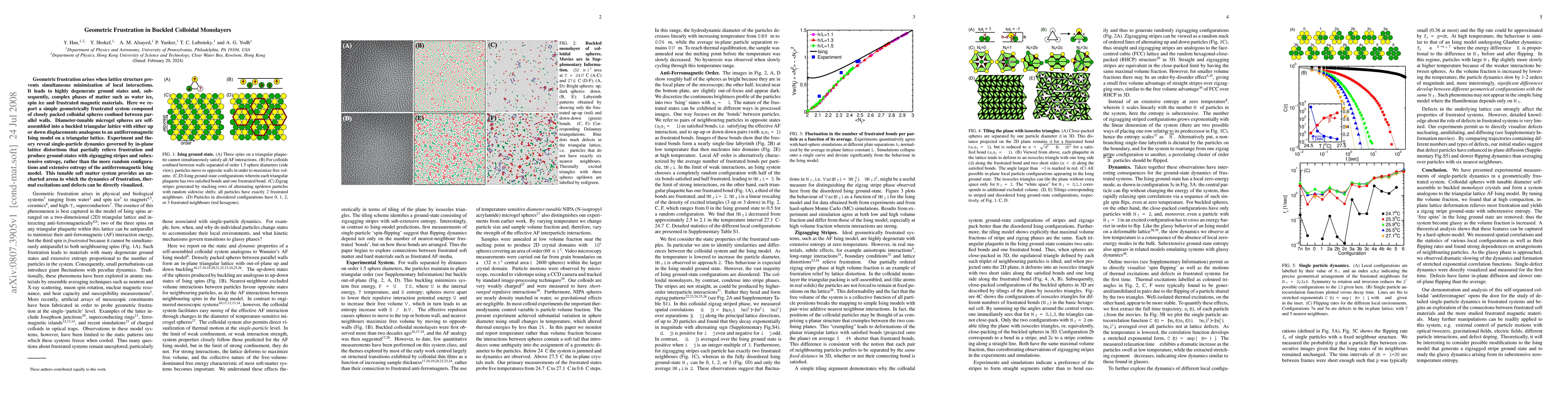 This study investigates geometrically frustrated buckled colloidal monolayers composed of tunable microgel spheres, revealing complex ground states and subextensive entropy due to in-plane lattice distortions. The system provides a novel platform to visualize frustration dynamics, thermal excitations, and defects.