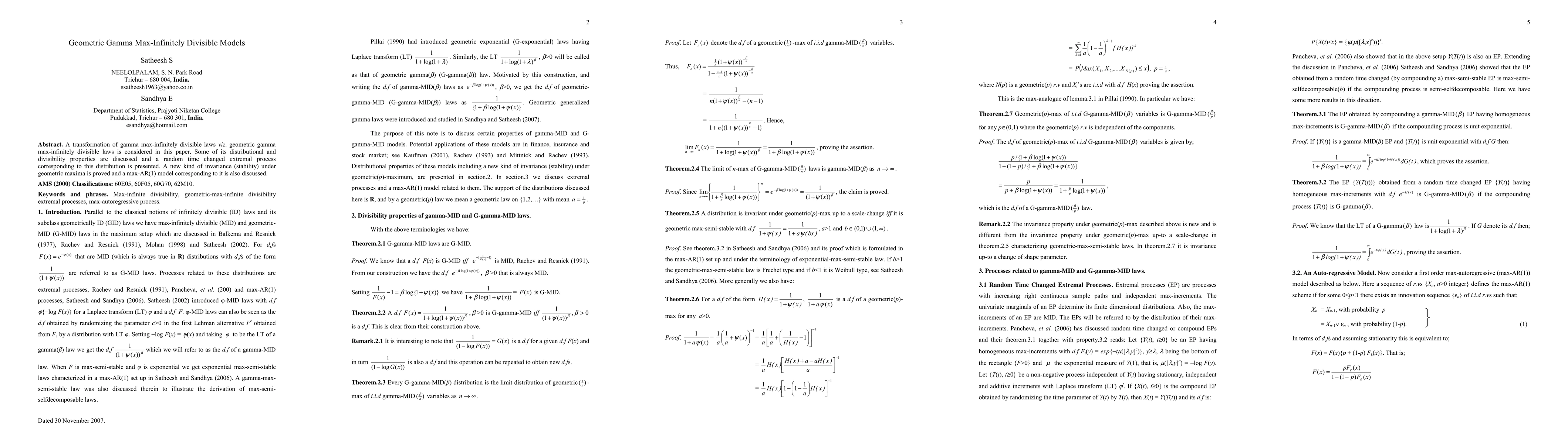 This paper explores geometric gamma max-infinitely divisible laws, analyzing their distributional properties, introducing a random time changed extremal process, and proving a new stability under geometric maxima. It also discusses a max-AR(1) model associated with these laws.
