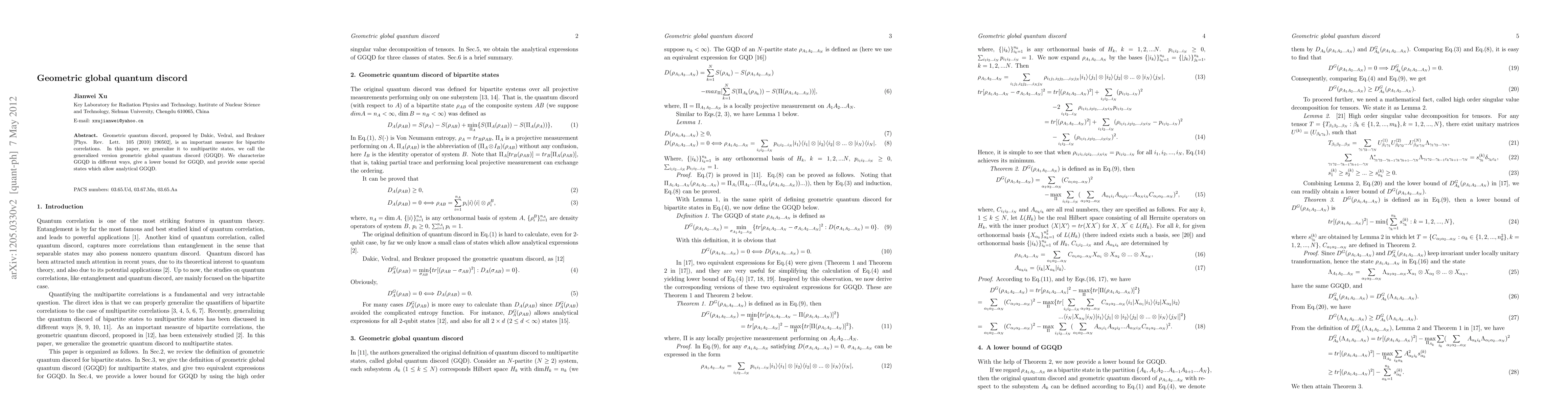 This paper generalizes geometric quantum discord to multipartite states, termed geometric global quantum discord (GGQD), and explores its characterization and analytical examples for special states.