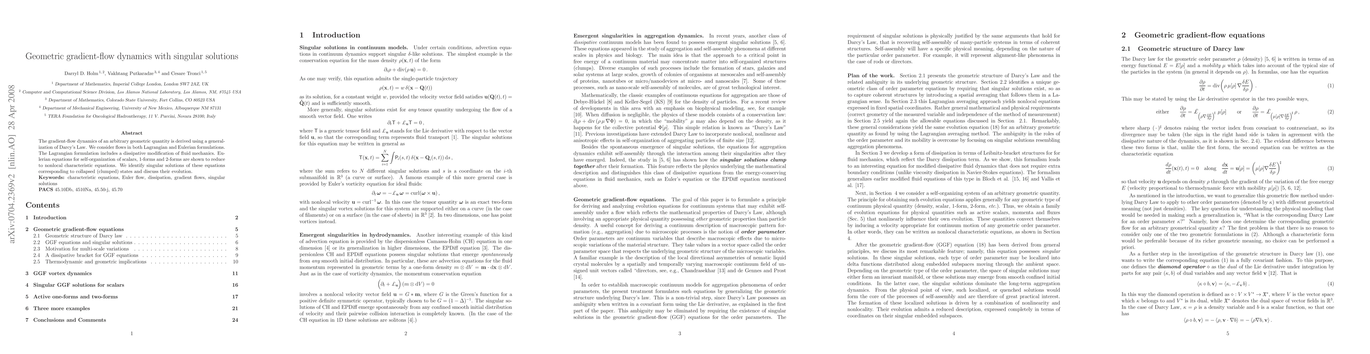 This research derives gradient-flow dynamics for geometric quantities, utilizing a modified Darcy's Law. It explores Lagrangian and Eulerian formulations, identifying singular solutions representing collapsed states and discussing their evolution in fluid mechanics.