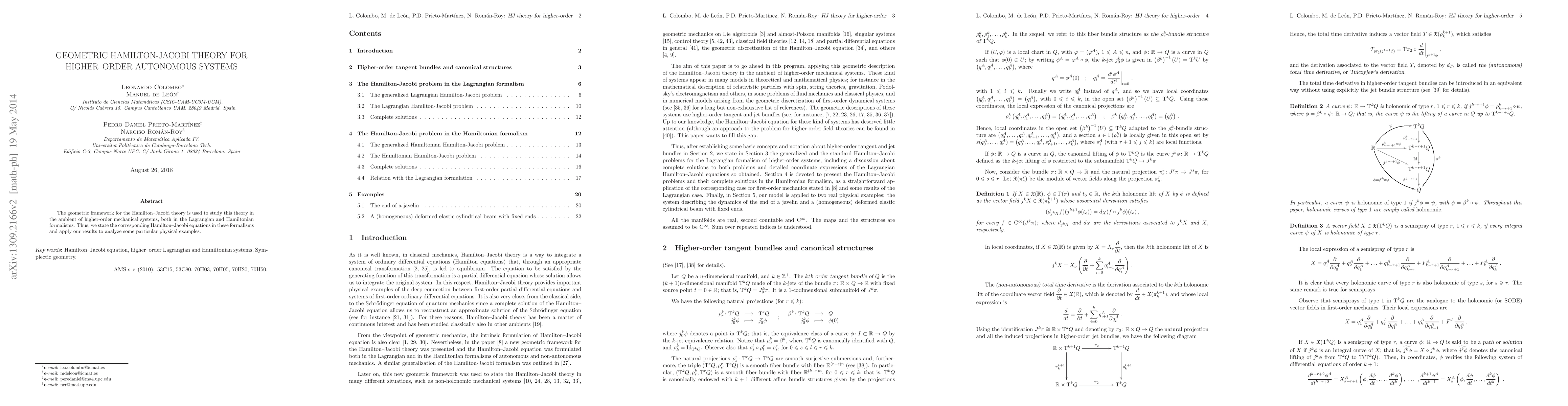 This paper develops a geometric Hamilton-Jacobi theory for higher-order autonomous systems, presenting the equations in both Lagrangian and Hamiltonian formalisms and applying the theory to analyze specific physical examples. The study emphasizes the geometrical framework in higher-order mechanical systems.