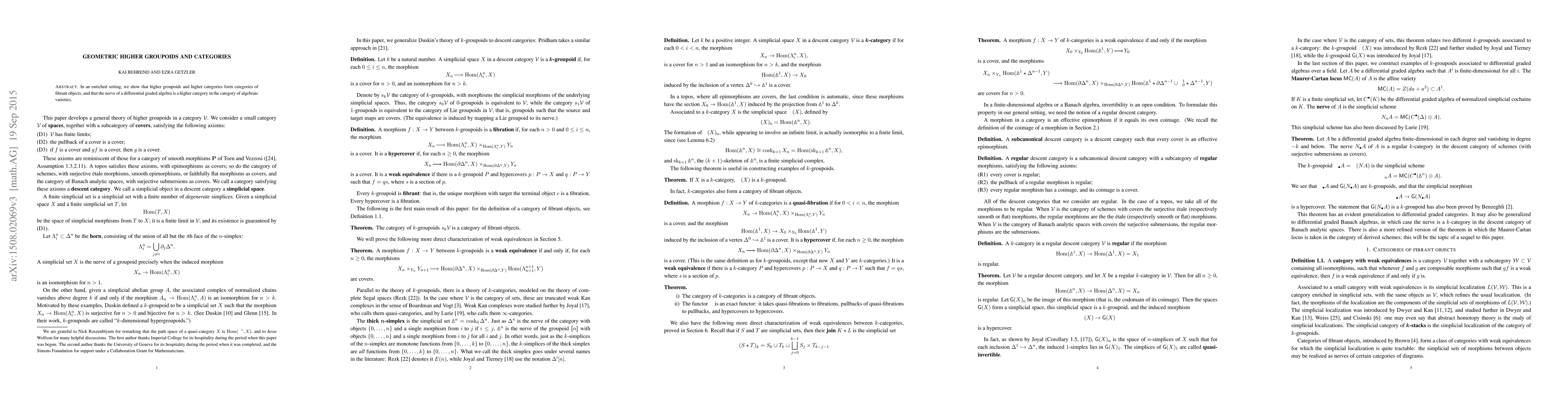 In an enriched setting, we show that higher groupoids and higher categories form categories of fibrant objects. The nerve of a differential graded algebra is a higher category in the category of algebraic varieties, where covers are defined to be smooth epimorphisms.