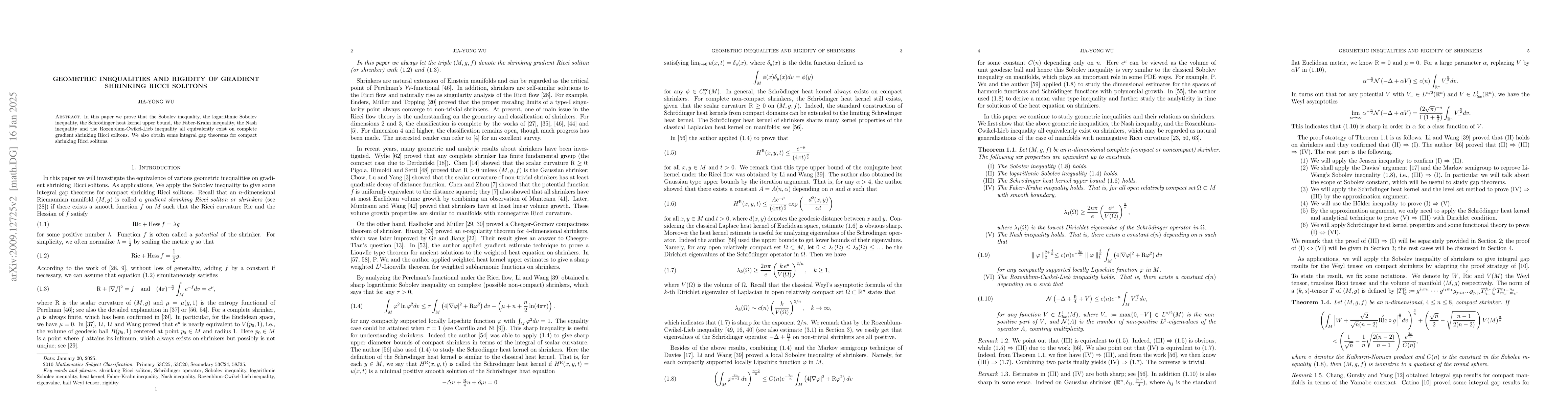 This paper establishes the equivalence of several geometric inequalities on complete gradient shrinking Ricci solitons, including the Sobolev, logarithmic Sobolev, and Faber-Krahn inequalities. Additionally, it presents integral gap theorems for compact shrinking Ricci solitons.