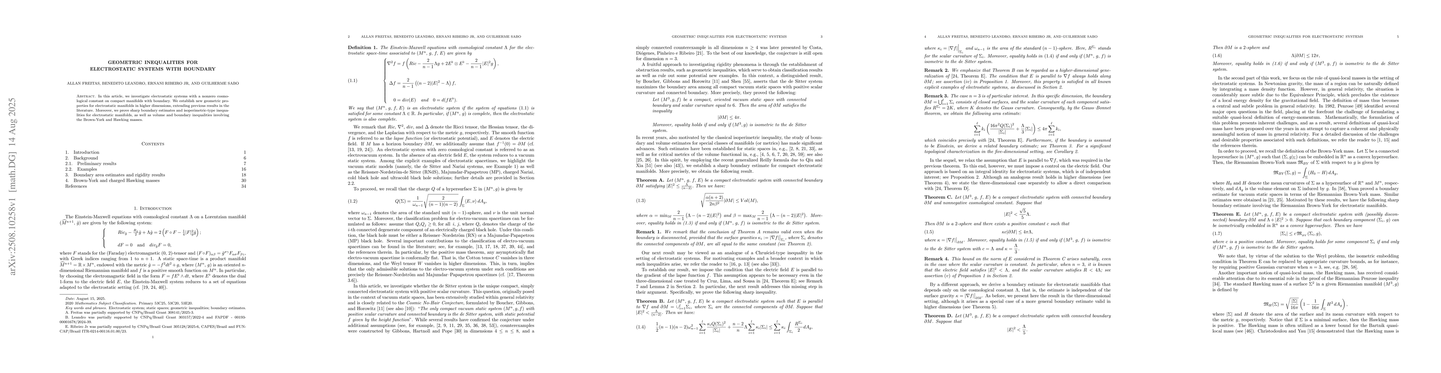 In this article, we investigate electrostatic systems with a nonzero cosmological constant on compact manifolds with boundary. We establish new geometric properties for electrostatic manifolds in higher dimensions, extending previous results in the literature. Moreover, we prove sharp boundary estimates and isoperimetric-type inequalities for electrostatic manifolds, as well as volume and boundary inequalities involving the Brown-York and Hawking masses.