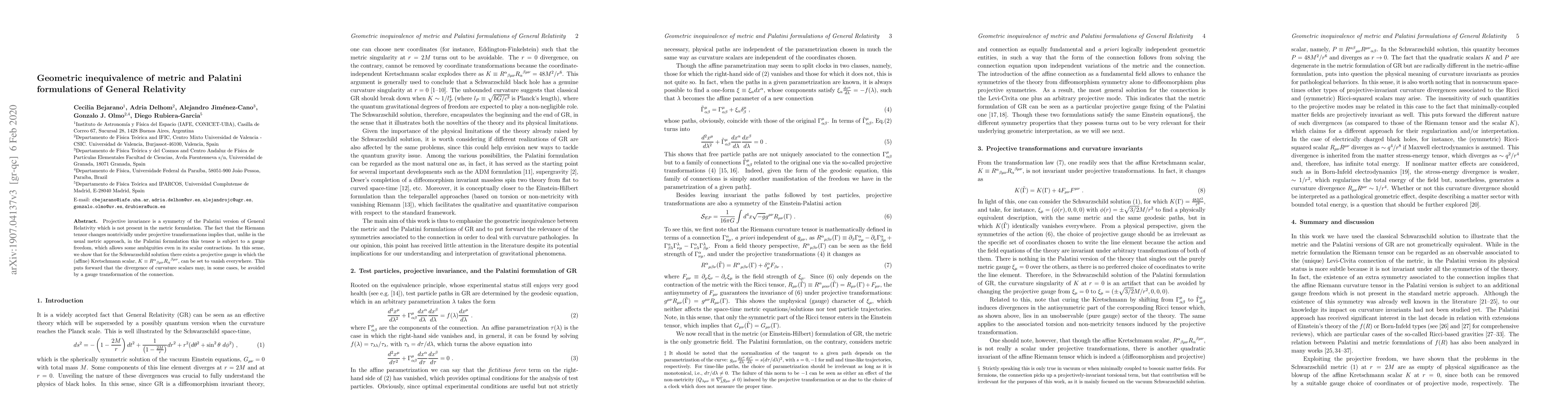 This paper explores the geometric inequivalence between the metric and Palatini formulations of General Relativity, highlighting the projective invariance and gauge freedom in the Palatini approach. It demonstrates that the Schwarzschild solution can be gauged to make the Kretschmann scalar vanish, suggesting that curvature scalar divergences can sometimes be avoided through connection transformations.