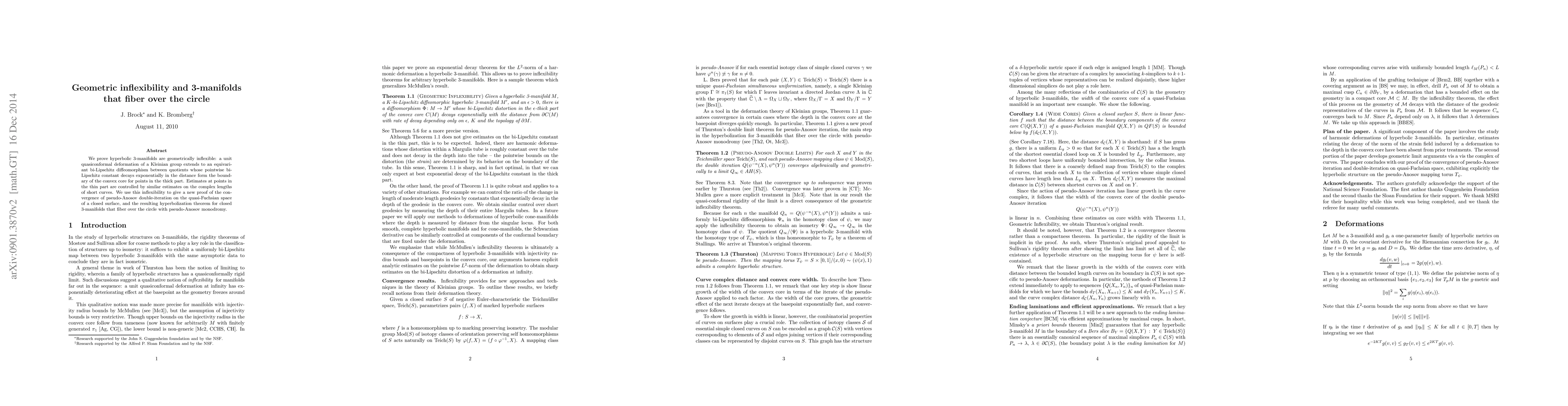 This paper proves that hyperbolic 3-manifolds exhibit geometric inflexibility under quasiconformal deformations and provides a new proof for the convergence of pseudo-Anosov double-iteration on quasi-Fuchsian spaces, leading to a hyperbolization theorem for closed 3-manifolds that fiber over the circle with pseudo-Anosov monodromy.