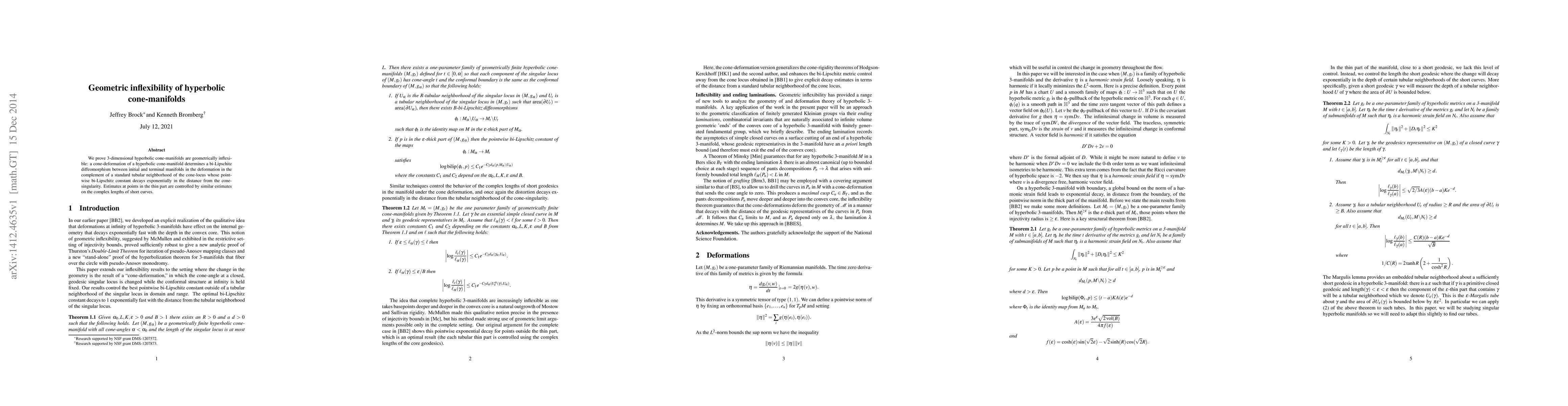 We prove 3-dimensional hyperbolic cone-manifolds are geometrically inflexible: a cone-deformation of a hyperbolic cone-manifold determines a bi-Lipschitz diffeomorphism between initial and terminal manifolds in the deformation in the complement of a standard tubular neighborhood of the cone-locus whose pointwise bi-Lipschitz constant decays exponentially in the distance from the cone-singularity. Estimates at points in the thin part are controlled by similar estimates on the complex lengths of short curves.