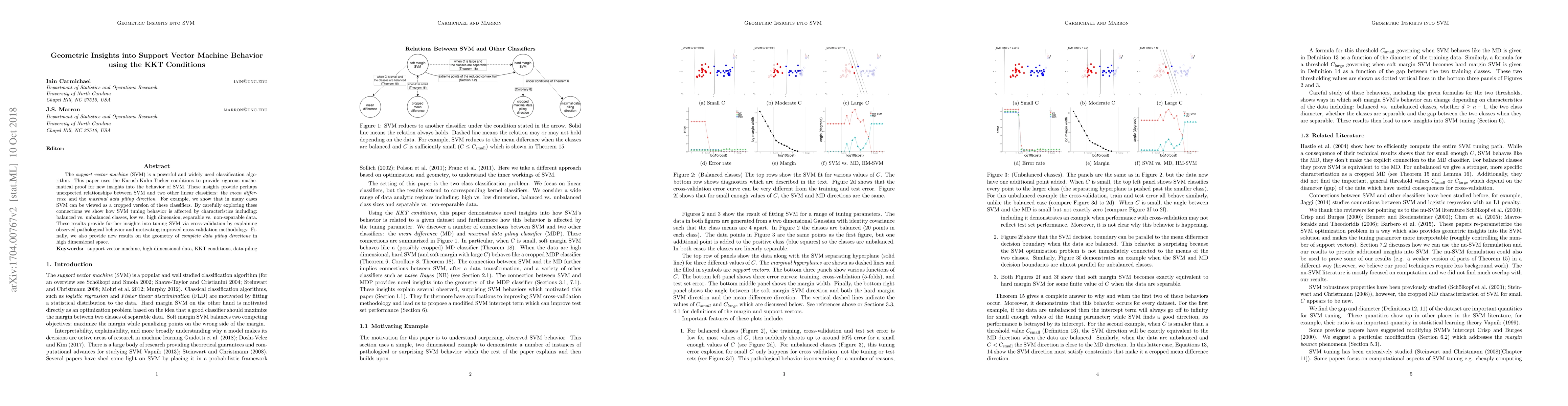 This paper leverages the Karush-Kuhn-Tucker conditions to reveal new geometric insights into the behavior of support vector machines (SVM), showing unexpected relationships with mean difference and maximal data piling direction classifiers. It explains how SVM tuning is influenced by class balance, dimensionality, and data separability, offering improved cross-validation methodology.