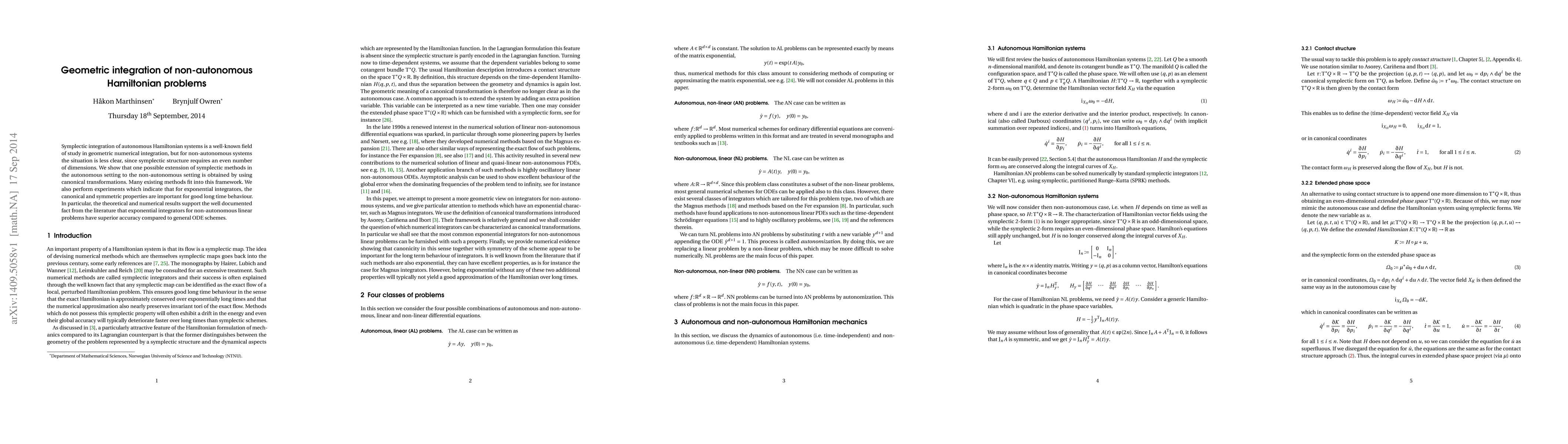 This paper extends symplectic integration methods from autonomous to non-autonomous Hamiltonian systems using canonical transformations, demonstrating their effectiveness through experiments. It highlights the importance of canonical and symmetric properties in exponential integrators for superior long-term accuracy, especially for non-autonomous linear problems.