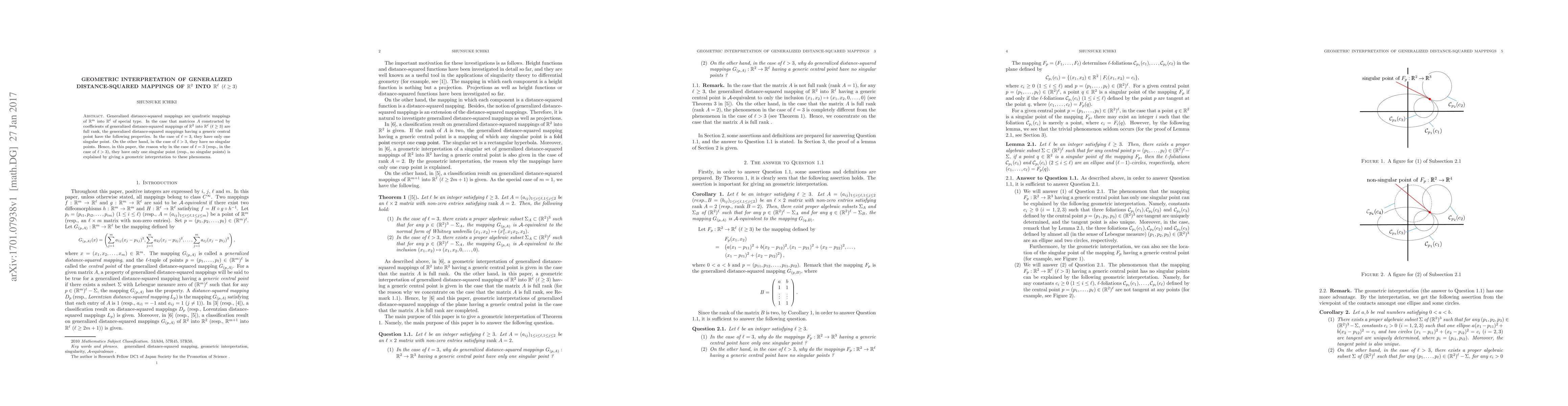 This paper explores the geometric properties of generalized distance-squared mappings from $\mathbb{R}^2$ into $\mathbb{R}^\ell$ ($\ell \geq 3$), revealing that when $\ell=3$, these mappings possess a single singular point, while for $\ell>3$, they exhibit no singular points, providing a geometric rationale for these phenomena.