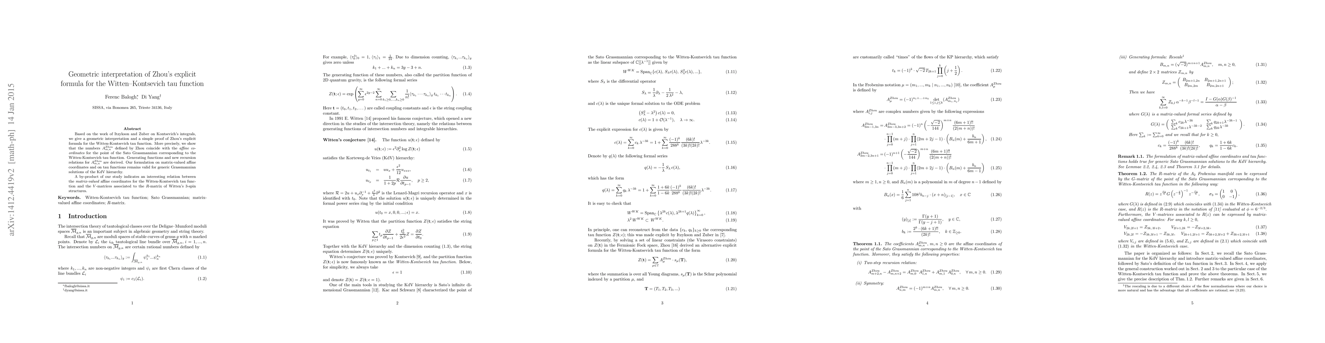 This paper provides a geometric interpretation and proof of Zhou's explicit formula for the Witten-Kontsevich tau function, showing it corresponds to affine coordinates in the Sato Grassmannian. Additionally, it uncovers new recursion relations and connections to $R$-matrices of Witten's 3-spin structures.
