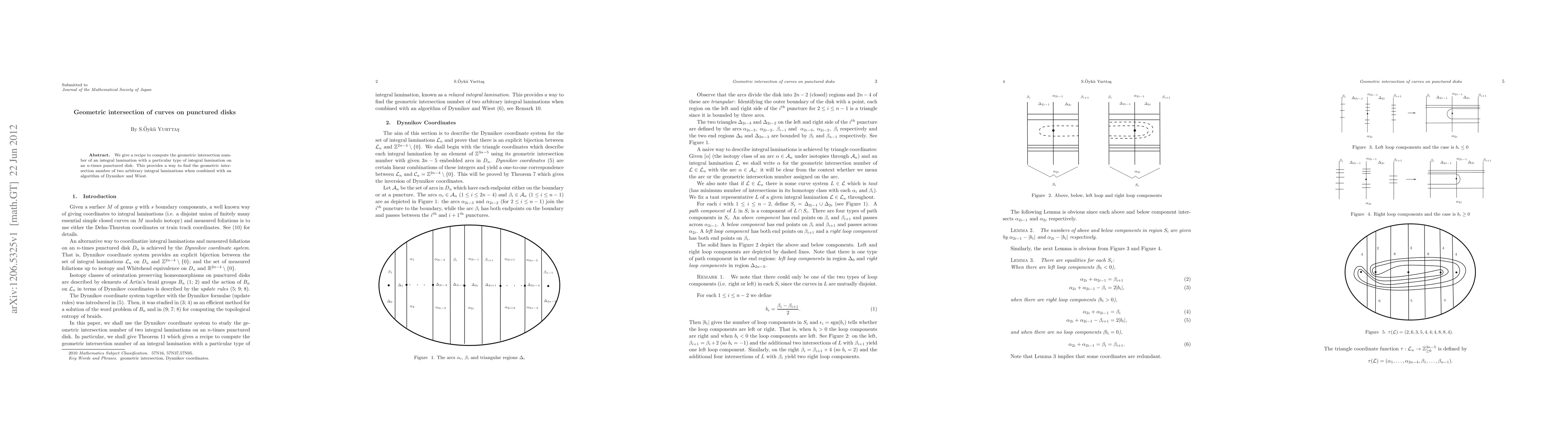 Researchers provide a method to calculate the geometric intersection number of two integral laminations on punctured disks, building upon existing algorithms.