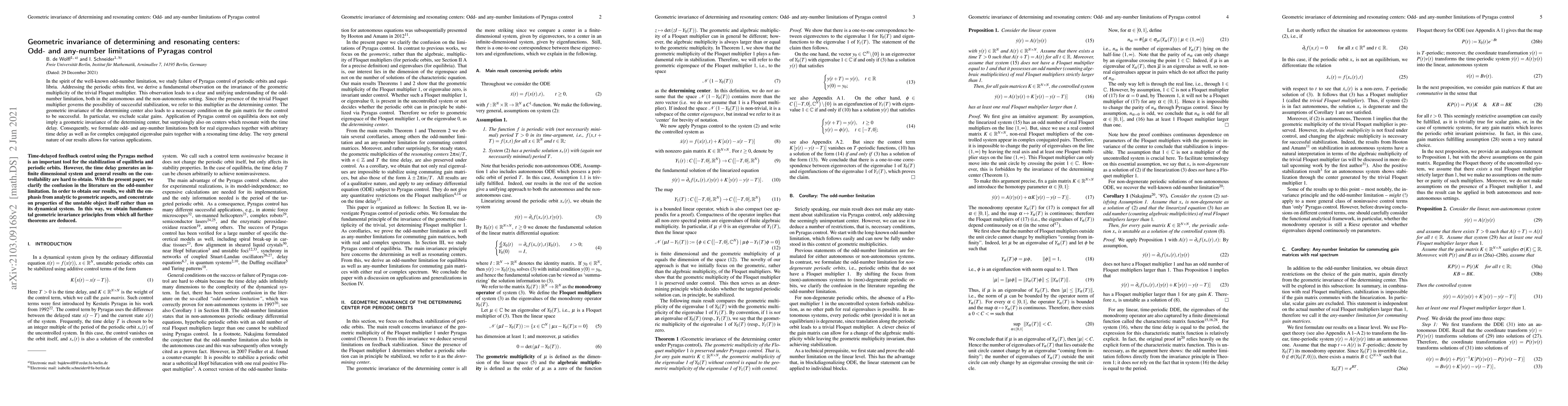 Researchers found that Pyragas control fails to stabilize certain periodic orbits and equilibria due to geometric invariance of determining centers, leading to odd- and any-number limitations for stabilization.