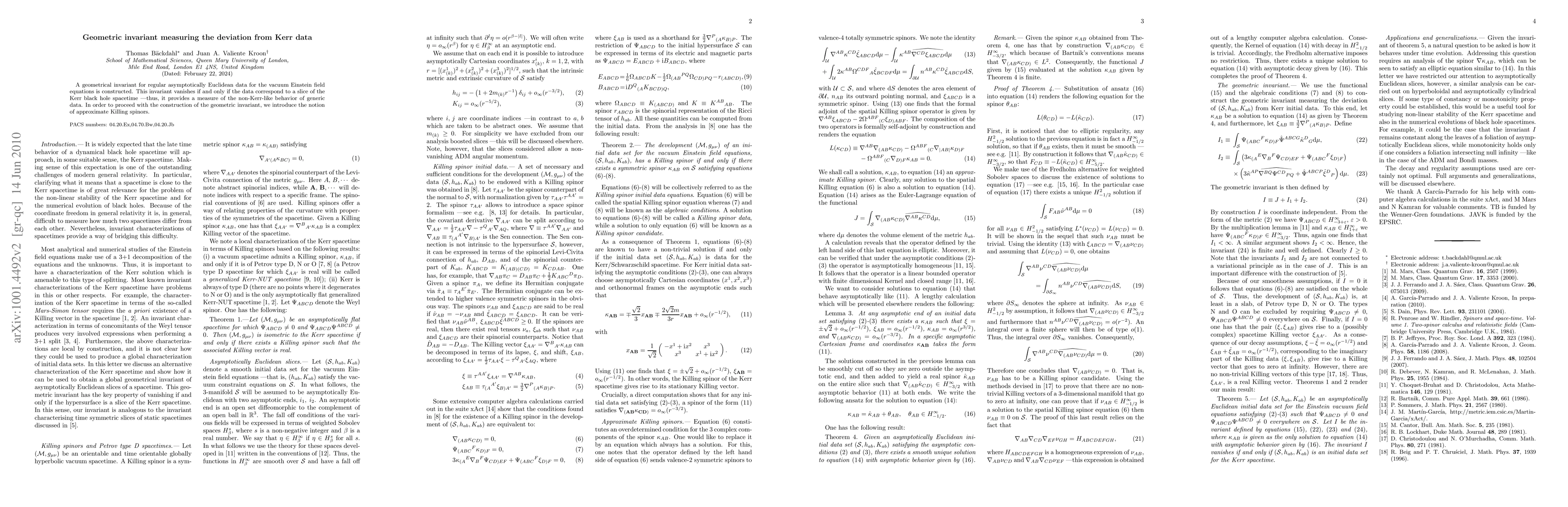 This paper constructs a geometrical invariant that measures deviation from Kerr black hole spacetime in the vacuum Einstein field equations, using approximate Killing spinors. The invariant vanishes if and only if the data corresponds to a Kerr slice, thus quantifying non-Kerr-like behavior.